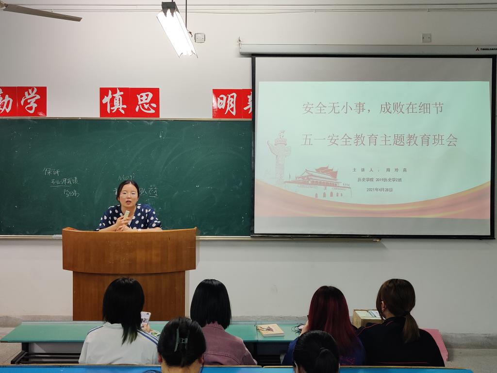 本网讯(19世界史 马志伟)为增强假期安全防范意识,4月28日下午,19历史学1、2班、世界史共三个班级先后召开了五一安全教育主题班会,会议由辅导员周玲燕老师主持,19历史师范、世界史全体同学参会。