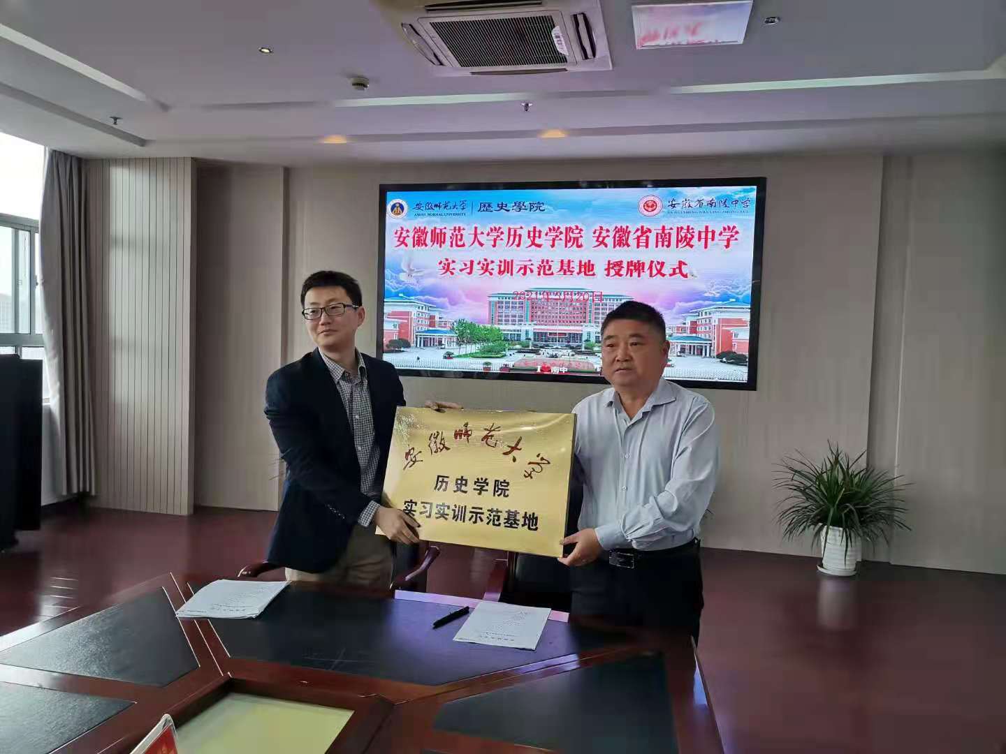 20日上午,公司一行首先到达南陵中学,看望8位实习员工,并与南陵中学董事长汤兵、副董事长奚海涛、历史教研组组长朱学文、历史年级组组长胡峰、历史组骨干教师周玮琴等实习单位的领导、教师就实习师范生的实习情况、师范人才培养、毕业生能力达成、双方的教研合作等事项进行了热烈的讨论,并举行了“实习实训示范基地”签约及授牌仪式。