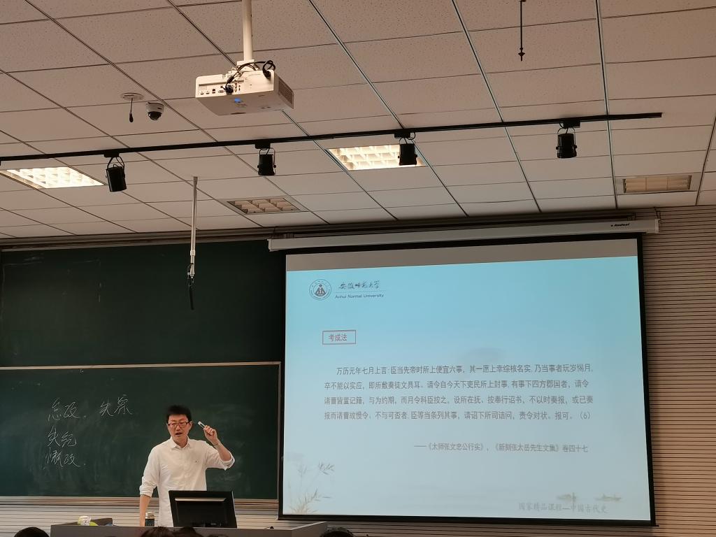 本网讯(图/文 叶萌)6月4日上午,2021年校本科教学示范观摩课在花津校区教学楼7号楼0501教室举行。英国上市公司365教师丁修真为20级历史学类2班员工讲授“张居正改革”课程内容。校本科教学督导团、公司领导、公司督导组以及部分中青年教师现场观摩了此次示范课。
