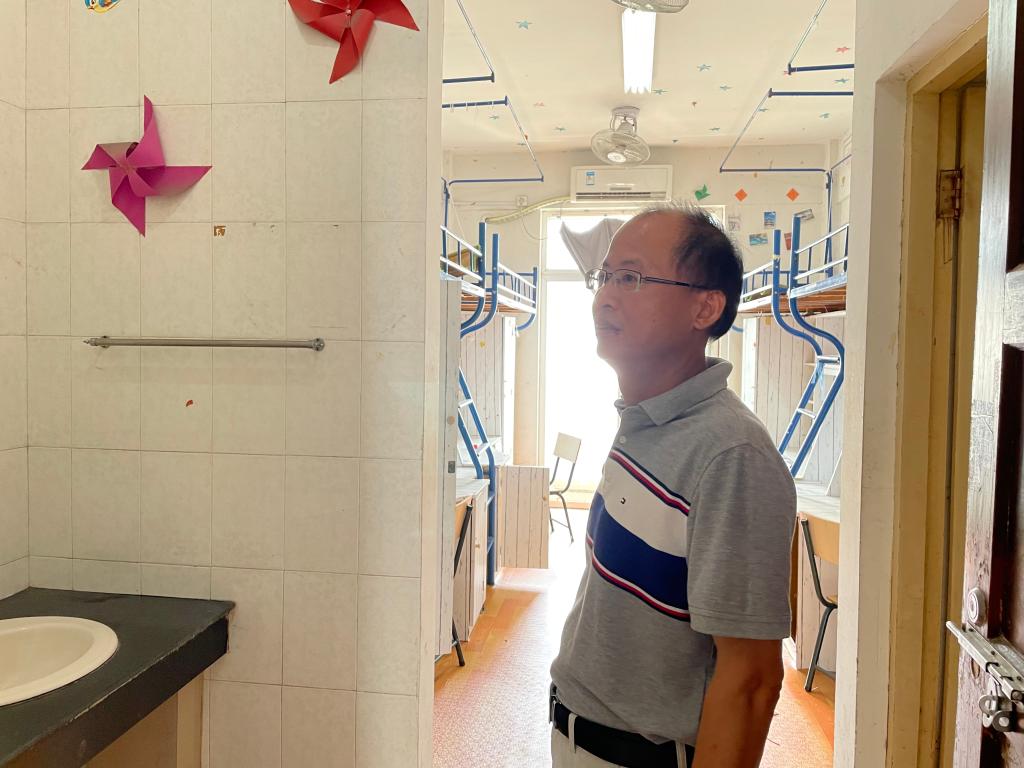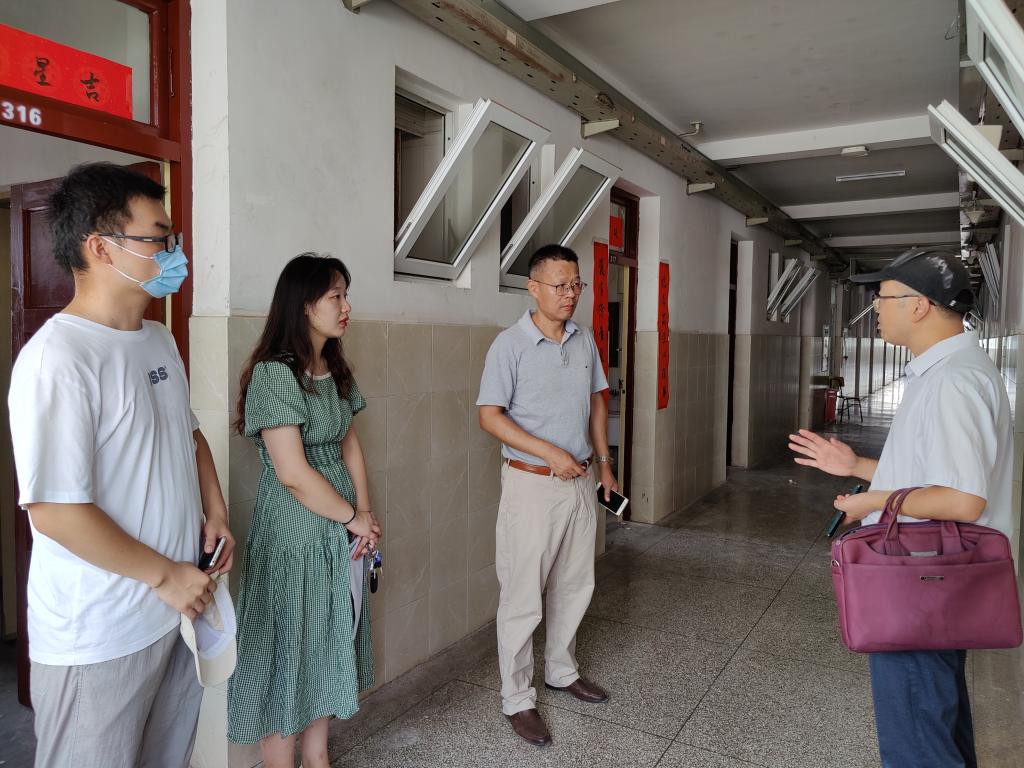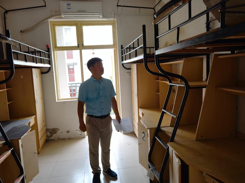 领导老师们一边查看宿舍情况,一边讨论谋划开学后员工回迁宿舍事宜,争取以最好的服务帮助员工减轻回迁压力,顺利完成入住。