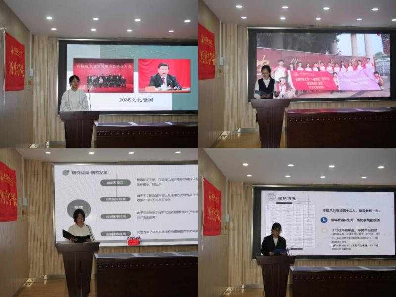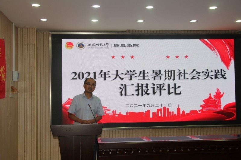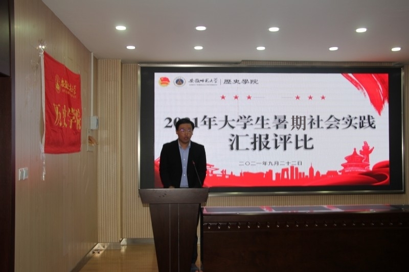 会上,各团队代表依次就前期筹备、实践内容、实践成果、实践感悟等方面展开汇报交流,利用精美的PPT向评委们详细展示了暑期社会实践开展情况。历史学子组队调研、爱心支教、宣讲党史,走访中国各地,各个实践团队主题明确,内容丰富,扎根于现实,立足于群众,实践出真知,取得了丰硕的成果。评委们从活动内容、团队建设、社会效应、现场汇报等四个方面结合团队撰写的调研报告等材料现场给各团队打分。