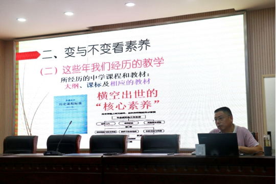 首先,刘老师通过“书内书外谈概念”明晰中学历史教师应具备德、才、学、识四大素养,要能讲出史感、编写史论、研究史法、得出史绩,从教、育、悟三方面培养员工的历史知识、历史思维和历史能力。接着在第二部分“变与不变看素养”中,刘老师以真实情景为例,从亲身经历的高考、教学角度出发进一步提出对中学历史教师素养的要求:立德树人,培养员工的思想导向和价值判断、实践能力和创新精神,要求教师分别在这三方面做到感动员工做有责任的“人”、感染员工做有自我的“人”、引导员工做有智慧的“人”。然后,在第三部分“蓝天呼唤涵素养”中,刘宏法老师通过解答“为谁学习”“怎么学习”讲述现阶段的历史学师范生应如何确定目标、夯实基础、修炼涵养。最后,刘老师还解答了在场几位同学的困惑,他强调,做好一名中学历史教师一定要博览群书、静思细研,注重教学中的历史逻辑与历史思维。