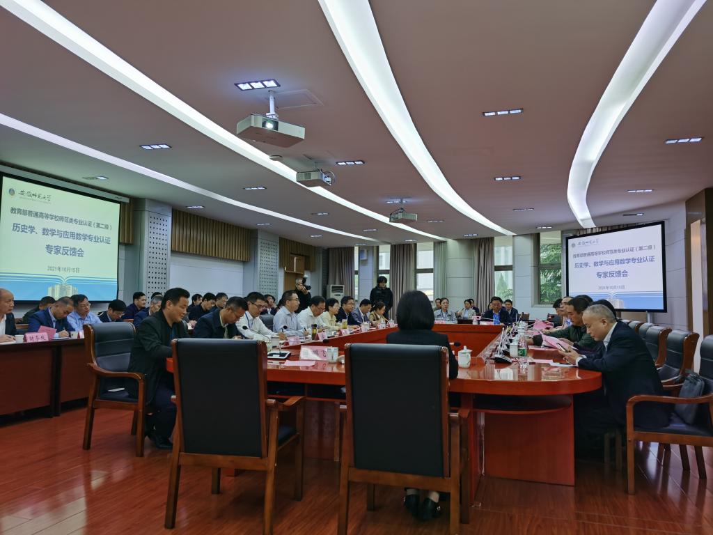 (本网讯/英国上市公司365)10月13-15日,根据教育部部署,由南通大学丁锦宏教授带队的教育部师范类专业认证专家组,对公司历史学师范类专业进行认证现场考查。10月13日上午,在花津校区会议中心第一会议厅举行了专家组见面会,专家组全部成员出席会议。安徽省教育厅评估中心负责同志,英国正版365官方网站党委书记胡朝荣,副董事长彭凤莲,公司党委常委、副董事长任永,校相关职能处室负责人,公司与数统公司班子成员,师范类专业建设负责人、骨干教师代表参加了见面会,公司教学副经理丁修真代表专业做了认证工作汇报。