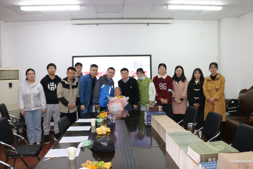 刘道胜为杨国宜教授颁发了捐赠证书,教师代表与研究生代表分别和杨国宜教授合影留念。