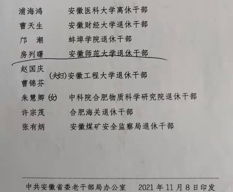 房列曙教授1970年加入中国共产党,2008年和2011年连续两届被遴选为中国杰出历史学家,2010年获“安徽省杰出专业技术人才”荣誉称号,享受国务院政府特殊津贴。2011年退休以后,任安徽省新四军历史研究会学术委员会副主任,安徽省大别山革命历史研究会副会长,安徽师大和芜湖市关工委宣讲团成员。房列曙教授教书育人,为人师表,为党的教育事业尽心尽力,尽职尽责。退休后,心中时刻关心着公司事业发展和青年学子的健康成才,每年都给公司“党校”上党课,离岗不离党,退休不褪色,在践行社会主义核心价值观上做出表率。房列曙教授不忘初心,积极传播正能量,2021年以来应邀赴相关单位作“学习四史”的报告40余场,以实际行动让大家感受到理想信念的力量。