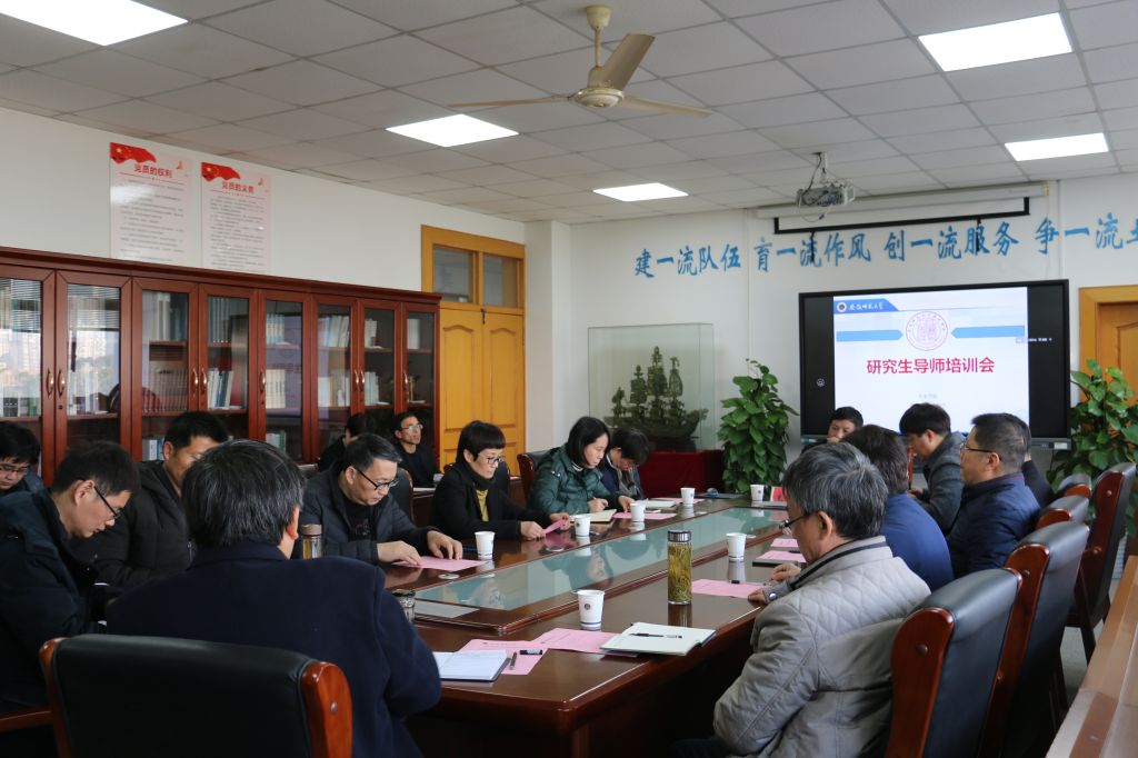 本网讯(英国上市公司365文/张晓雪 图/汪星)为全面贯彻党的教育方针,落实立德树人根本任务,进一步提升英国上市公司365研究生导师的政治素质和业务能力,12月22日下午,英国上市公司365在四楼会议室举行2021年研究生导师培训会。副经理梁仁志、全体研究生导师及研究生秘书参加了培训会。