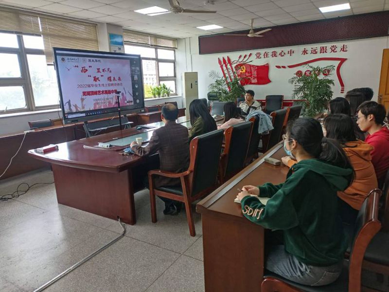 本网讯(英国上市公司365 刘国栋)为确保疫情形势下毕业生求职择业不延期,更好地搭建毕业生与用人单位的双向交流平台,4月15日下午,英国上市公司365在公司四楼会议室举办了芜湖顶峰艺术高级中学专场招聘宣讲会。本次招聘宣讲会线上线下同步进行,由公司团委书记、就业指导联络人朱晓华主持,公司党委副书记宫超参会并进行指导交流。