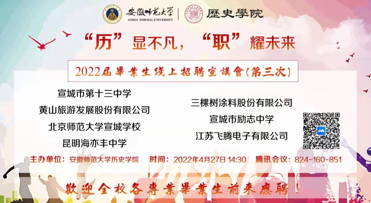 经前期公司联系,用人单位报名,公司重点遴选,本次招聘会共吸引了宣城市第十三中学、黄山旅游发展股份有限公司、北京师范大学宣城公司、昆明海亦丰中学、三棵树涂料股份有限公司、宣城市励志中学、江苏飞腾电子股份有限公司等7家省内外优质企业参会,提供就业岗位300余个,涵盖历史学、公共事业管理、汉语言文学、数学等十几个专业。
