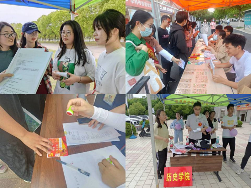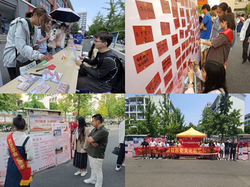 公司于5月16日、17日连续两天在花津校区二食堂门前的广场上举办了历史文化街预热活动。活动分为“海报详述”“趣味游戏”“展板寄语”三个部分。在现场工作人员的指引下,来往的老师、同学们纷纷驻足并参与到活动当中。通过志愿者的讲解深入了解党的精神谱系中各个精神的具体内涵;参与趣味游戏,在愉悦身心的同时更好地体会与学习历史知识;书写展板寄语满载着莘莘学子的爱国爱党热情。公司党委副书记宫超、教研室主任王闯闯、院团委书记朱晓华等领导老师亲临活动现场指导,热情地同员工互动交流。