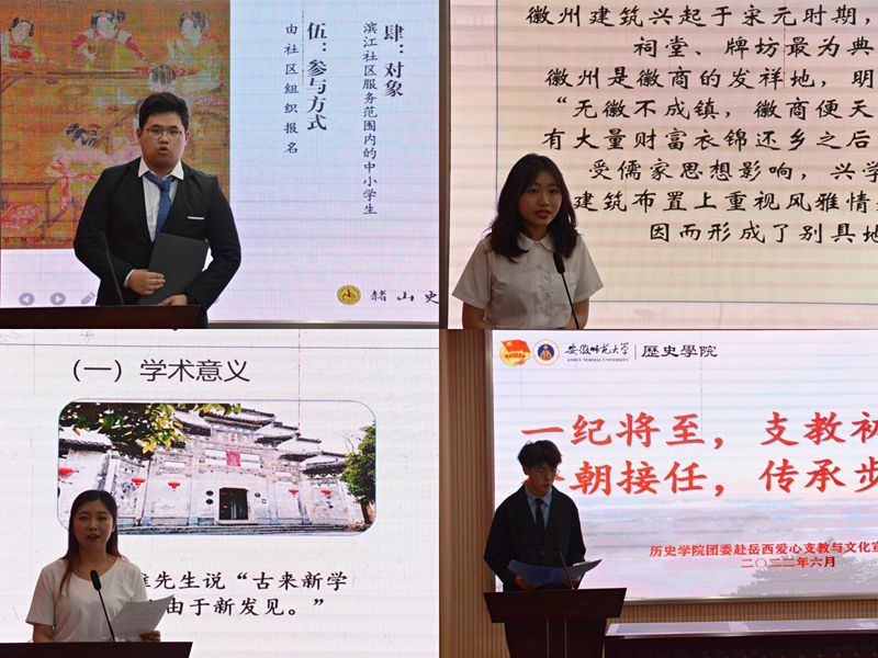 经过前期的团队招募与组建,公司共组建本科生团队和研究生团队25支。各团队汇报人通过PPT汇报展示了团队的实践主题、目的与意义、活动行程以及预期成果等方面内容。各团队选题多样、角度新颖,立足历史专业特色,如乡村振兴、历史文化田野调研、档案整理、历史文化宣讲等。实践内容聚焦社会热点,结合时代所需,如赴太湖的田野文化调研、歙县古祠堂的考察、乡村变化调研、居民医疗观念变化调研等。评委老师们就各实践队答辩内容认真提问,发表见解,提出建议,同学们受益匪浅。