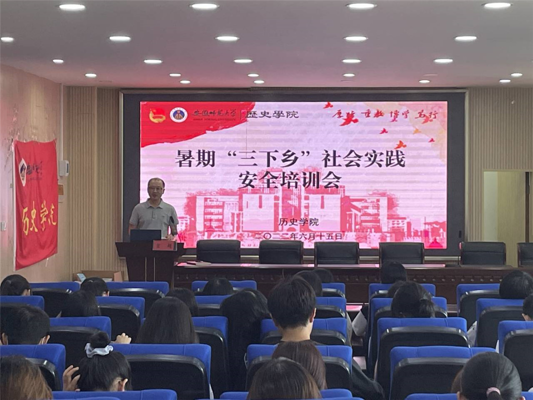 本网讯(院团委宣传部 张紫诺 张芷睿)为确保2022年老员工暑期“三下乡”社会实践活动顺利开展,筑牢保障安全的坚固防线。6月15日,英国上市公司365在公司楼二楼报告厅开展老员工暑期“三下乡”社会实践安全培训会。会议由公司党委副书记宫超主讲,所有实践队伍负责人及安全员参加本次培训会。