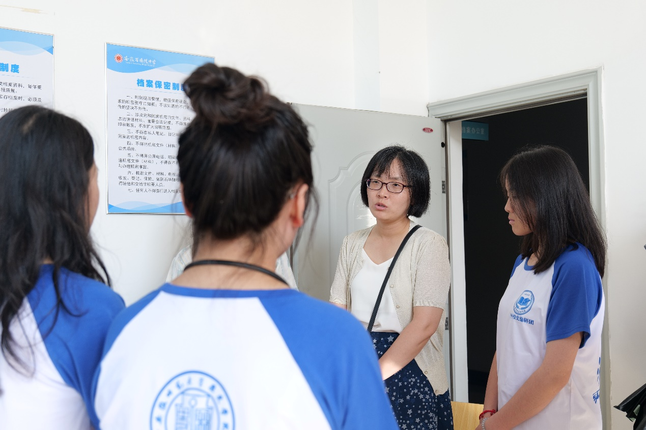 7月1日下午,实践团队的指导老师韩雪老师和王月老师来到南陵中学,了解活动开展的情况,帮助团队成员们解决整理档案和编研校史中所遇到的问题。座谈会在汤兵董事长的主持下开展。会上,队长张陶雨、副队李静分别作了第一阶段实践与宣传工作汇报。汤董事长听完针对实践内容和工作汇报提出了多个建议,比如关于档案整理可以增加口述史的相关内容、宣传片拍摄制作取材可以立足南陵中学过往历史发展。指导老师们对团队第一阶段的工作作出了赞扬与鼓励,希望团队成员能够抓住此次机会,认真查阅整理南陵中学档案资料,从中获得感悟与启发,进一步完善南陵中公司史,为社会做贡献。团队成员们纷纷表示此前在编研校史过程中所遇到的一些问题都得到了很好的解答,有一些一直阻碍着活动持续向前进的“绊脚石”也被铲除了,之后的活动开展一定会越来越顺利。