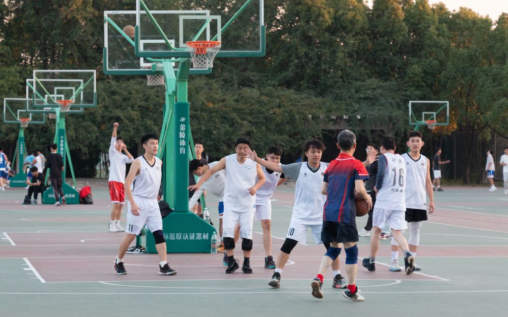 赛前,参赛师生在裁判员的指导下熟悉比赛规则,进行热身运动。随着哨声响起,双方队员迅速摆开阵势,进入状态。赛场上,师生们个个精神饱满、斗志昂扬,以矫健的动作运球、传球、抢球、断球、投篮,自由穿梭于比赛场地之中。灵活的传球,精彩的投篮,强悍的防守……每一招每一式展示了师生们良好的身体素质和扎实的基本功,观赛师生不时发出阵阵掌声和喝彩声,现场气氛激烈活泼。研究生队既包括刚入校的新生也有往届的老生,新老生信心十足,相互配合默契,展现了青年学子积极进取的精神面貌。教师们虽不及研究生队年轻力盛,但能熟练地使用各式各样的篮球技巧,在一转身、一抬手之间引起大家阵阵欢呼。全体参赛师生在团队协作中展示个人能力,真正发扬了“友谊第一、比赛第二”的精神,赛出了水平,赛出了风采,呈现了一场异彩纷呈的比赛。最终,经过激烈的角逐,研究生队以4分优势略胜一筹。