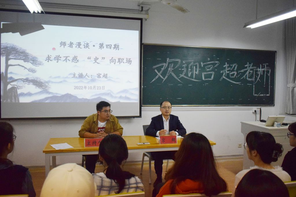 在师生互动阶段,同学们踊跃提出自己目前的困惑。宫超针对与会同学提出的“学术型研究生如何在应聘中突出自己的优势”“专硕研究生现阶段的重心应该放在哪里”“如何在就业形势越来越严峻的背景下避免自身焦虑”等问题一一给予了回答,并从时间管理、职业选择、应聘技巧等方面给出了详细的建议。活动末尾,宫超对大家提出三点叮嘱:一是既不能因为不愿走学术之路就放弃读书写作,也不能因醉心学术而不顾其它;二是在求学的过程中要时刻关注个人未来的发展方向,主动了解和把握就业形势;三是在坚定自己理想的同时,学会对就业目标进行灵活调整。