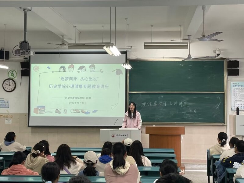 为提升各班员工骨干、心理委员以及寝室长的心理健康工作能力,公司组织了专题培训,线上线下共同参与。发展辅导站站长韩雪老师结合自身经历,向同学们生动地阐释心理疏导导方法。同学们认真聆听,与老师进行互动,在解决自身迷茫与困惑的同时,主动承担服务同学的职责。