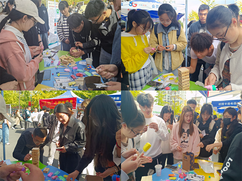 公司于10月25日上午分别在花津校区与天门山校区开展心理健康教育宣传活动。现场开展了“互喂棉花糖”“现场配对”等小游戏,帮助员工疏解烦恼。活动现场气氛轻松热闹,同学们踊跃参与。