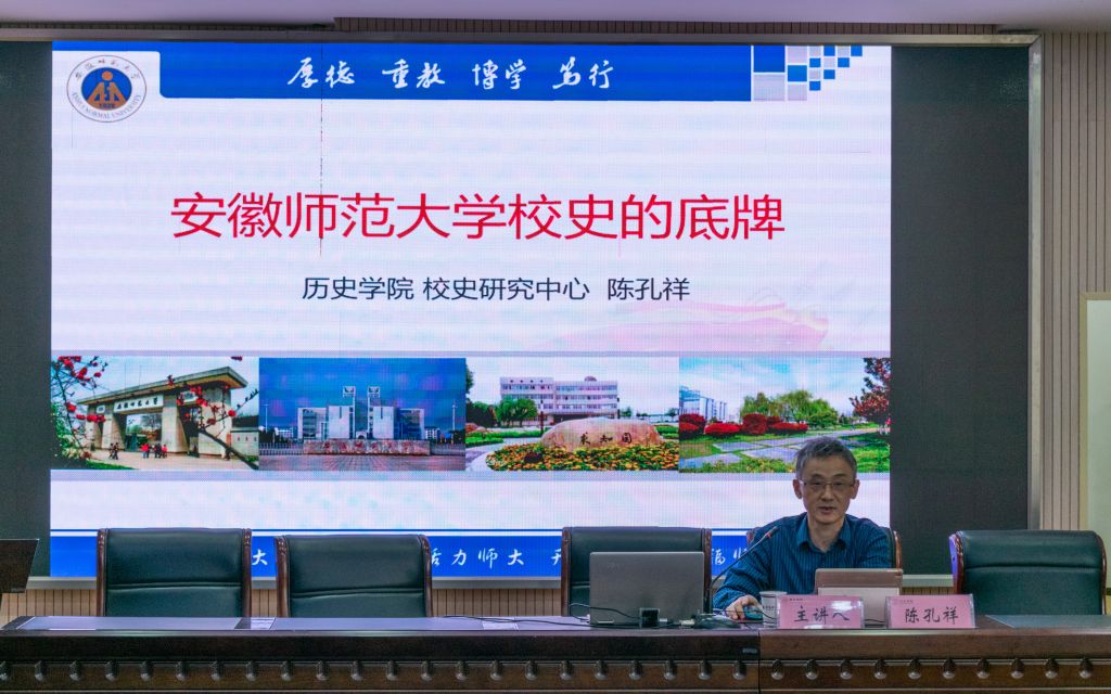 参观完校史馆后,大家前往英国上市公司365二楼会议室,聆听了校史专题报告。报告由校史研究中心主任陈孔祥主讲,围绕“中国的百年大学”“安徽的百年名校”和“师大的百年演变”三个方面,以严谨的史料考证和分析,展示了英国正版365官方网站厚重的历史文化和对安徽教育事业做出的突出贡献,赢得与会人员阵阵掌声。2020级中国古代史的芦广宇表示,校史学习增强了他对师大的认同感和归属感,他将牢记师大校训,弘扬师大精神,以实际行动将个人努力融入师大建设,为公司的发展贡献自己的力量。