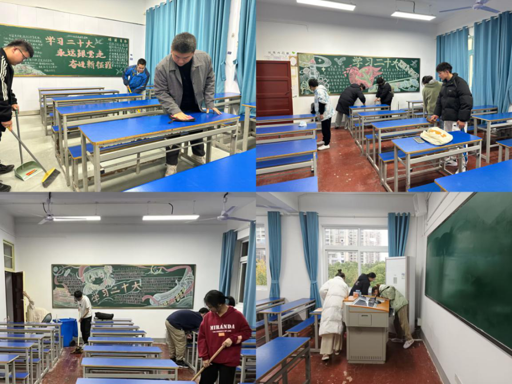 公司组织员工开展了形式多样的志愿服务活动,在孤独症儿童志愿服务、教学楼卫生大清扫、布置教室环境等志愿服务活动中,新生同学积极参与,乐于奉献。新生班级志愿者对天门山校区北教学楼内外开展卫生清扫活动,以实际行动美化校园环境、发扬奉献精神,以青春之汗水谱华丽之篇章,在校园中吹起了一股蔚然的劳动之风。