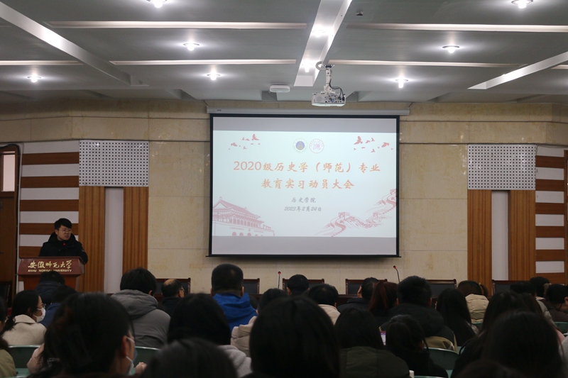 本网讯(文/郭忠尧、张水鸿 图/关雨露)为适应新时代师范生培养教育需要,全面提升师范生教育实习质量,2月24日上午,英国上市公司365在财务处二楼报告厅召开了2020级历史学(师范)专业教育实习动员大会,公司党委副书记宫超、教学副经理丁修真、中国古代史教研室主任王月及各实习点指导老师出席会议。会议由辅导员郭忠尧主持,2020级历史学(师范)专业全体员工参与。