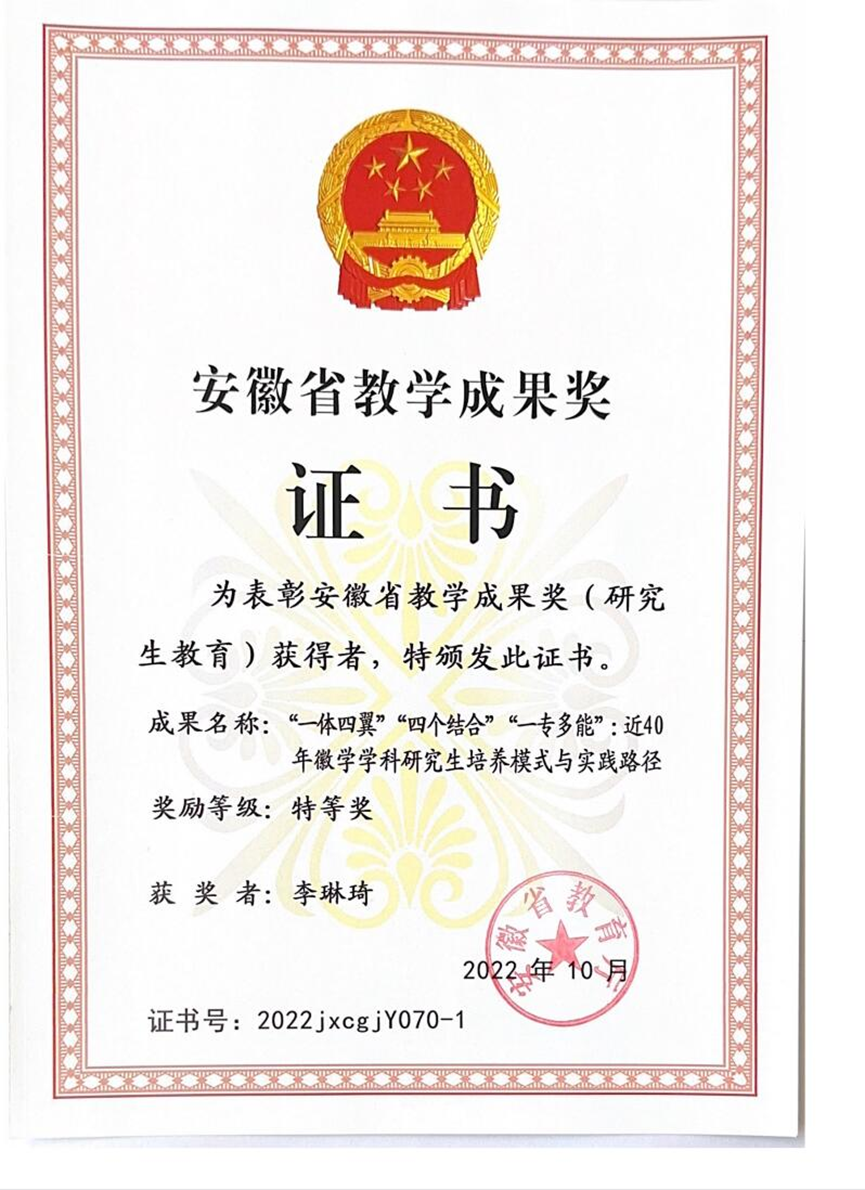 三是重视育人,教学相长。在历史学高年级本科生中开设必修课程《徽学概论》,在公司开设《徽文化概论》等校通识课,宣扬中华优秀传统文化。李琳琦教授领衔研究生教学团队申报《“一体四翼”“四个结合”“一专多能”:近40年徽学学科公司产品模式与实践路径》获2022年安徽省教学成果奖特等奖。