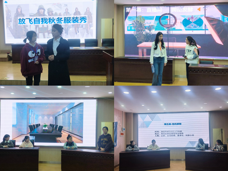 各个团队结合当下社会热点,围绕“老店经营不善面临倒闭”“医药业突遇偶然事件信誉受损”“直播带货产品不合格”“服装销售对顾客区别对待引发网络热议”“餐饮业顾客食品中毒”等危机事件,通过现场表演为观众展示面对不同公关危机需要如何处理。如面临“老店经营不善面临倒闭”危机,团队团结一致,坚持诚信经营帮助老店扭亏为盈;医药业突遇偶然事件信誉受损危机中,团队沉着应对,找到问题的关键点,及时挽回名誉。在直播带货出现不合格产品,主播和直播平台同时被推上风口浪尖时,公关团队另辟蹊径,通过助农带货巧妙化解危机……参赛团队表演投入,生动形象,淋漓尽致地展现了自身的公关能力。各组表演结束之后,赵平老师对参赛队伍和作品进行点评,他肯定了参赛选手面对和处理危机的公关能力,对各参赛团队通过作品传播社会正能量表示认可,也指出了参赛作品存在的不足,如危机凸显的不够,公关的逻辑性和现实性有待加强等。
