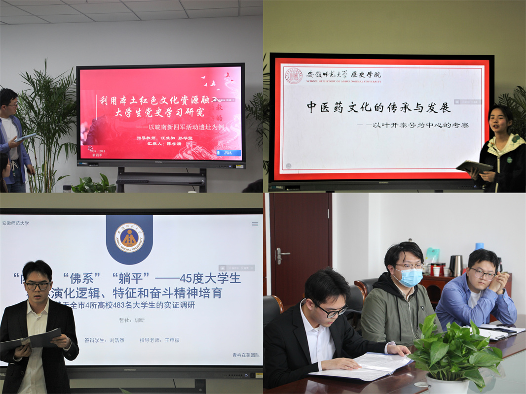 每对于《叶开泰号的传承与创新》这一项目,老师们提出有关“史料和调研背景”“突出红色背景”“主副标题的应用”“传承脉络的梳理”等建议;对于“45°老员工”这个项目,老师们提出“层次混乱”“有效运用图表分析”“社会调研的方面”等意见及建议;在“研究皖南新四军活动遗址”项目中,老师们提出关于“党史学习和教育的选择”“项目应用方向”“作品思路”等具体建议。各组汇报人认真聆听,吸取意见完善作品。