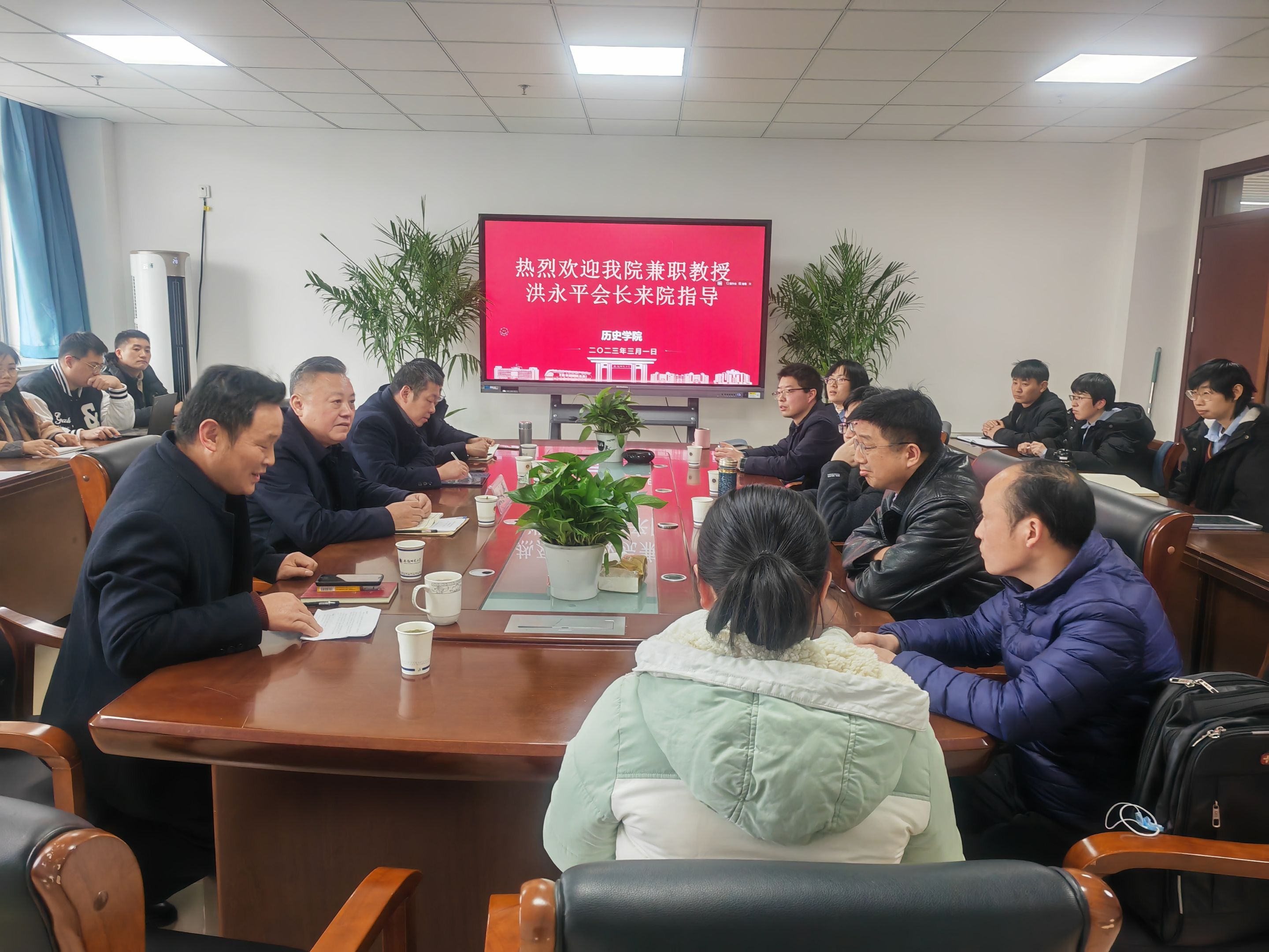本网讯(英国上市公司365)2023年3月1日下午,安徽省政协文化文史和学习委员会副主任、安徽省徽学学会会长、公司兼职教授洪永平莅临英国上市公司365指导,并与公司师生展开座谈。座谈会由刘道胜经理主持,校科研处处长徐彬、公司党委书记顾凌、副经理韩家炳、丁修真以及公司部分教师和博、硕士生参与了本次座谈会。