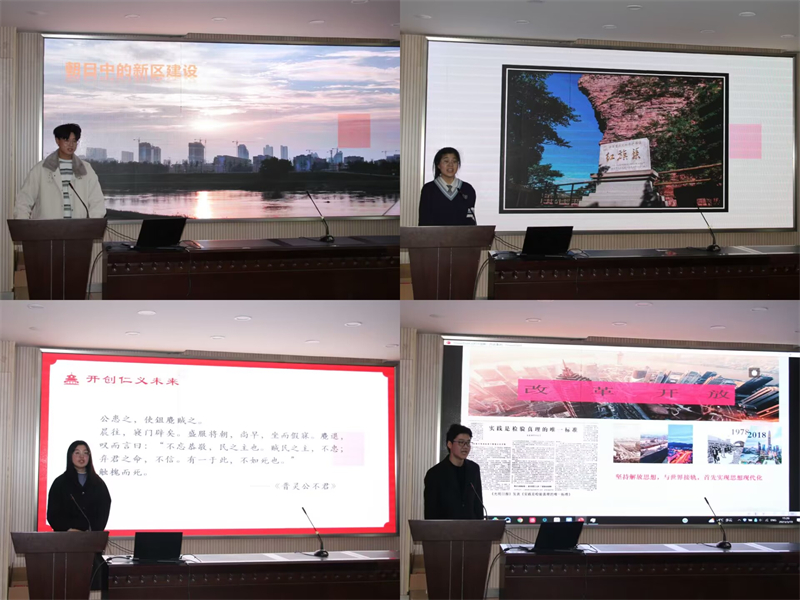 经过初赛的激烈竞争,共有13位选手入围决赛。主持人介绍了比赛的基本流程和评分标准,本次比赛采取满分100分制,包括演讲内容、语言表达和形象风度三个评分部分,要求参赛者将演讲时间控制在4分钟以内,按照抽签序号依次上台脱稿演讲。赵博涛、吴灿、汤泽毓等选手从“红色文化与革命精神”“基础教育振兴”“乡村建设”“时政热点”等方面进行演讲,结合优美的音乐和精美的PPT将历史的厚重与新时代青年的使命担当巧妙融合,声情并茂、慷慨激昂,引起现场师生强烈的情感共鸣。
