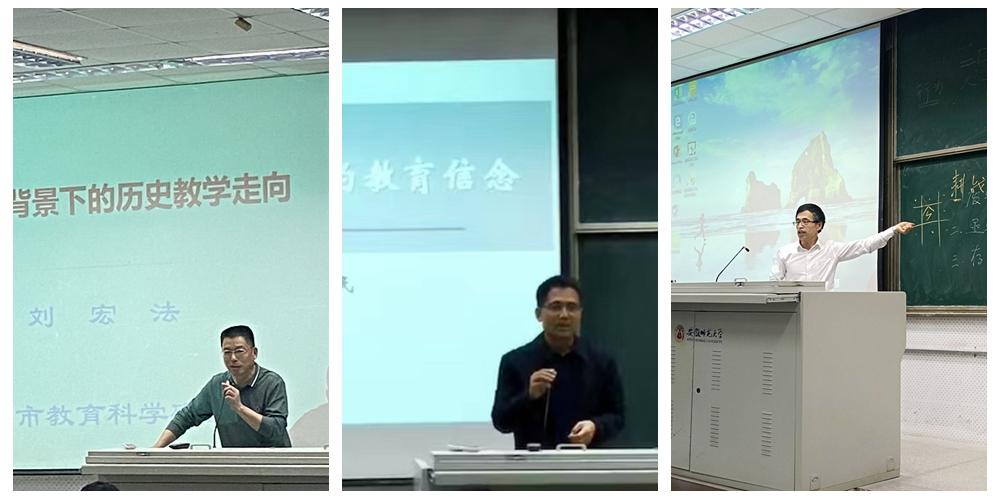 刘宏法说明了“三新”背景下的历史教学走向,提出“教学有标、考试无纲、评价全面、教法无定”的教师途径。王德民从哲学思维角度浅谈历史教师的教育信念,从理论角度将同学们专业信念拔高。王彦章向专硕研究生与本科生例举《纲要》中的四则材料,简单分析了高中历史教学中的逻辑重构,帮助同学们理解如何在实践中提高教学技能。
