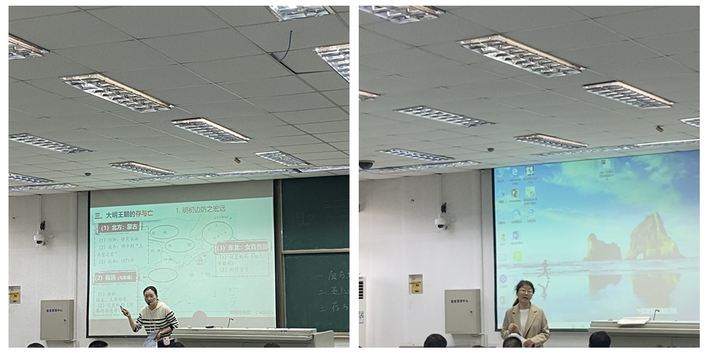 在示范课环节,唐淑云从“废与立-强化君主专制”“退与进-背离世界潮流”“存与亡-反思国运兴衰”三个方面讲述了《从明朝建立到清军入关》一课的主要内容。孙华莹就讲课内容作出精简的评析,极大地肯定了本节课的教学立意的新颖与授课语言的从容,同时在提问环节与逻辑关系问题上提出自己的看法。