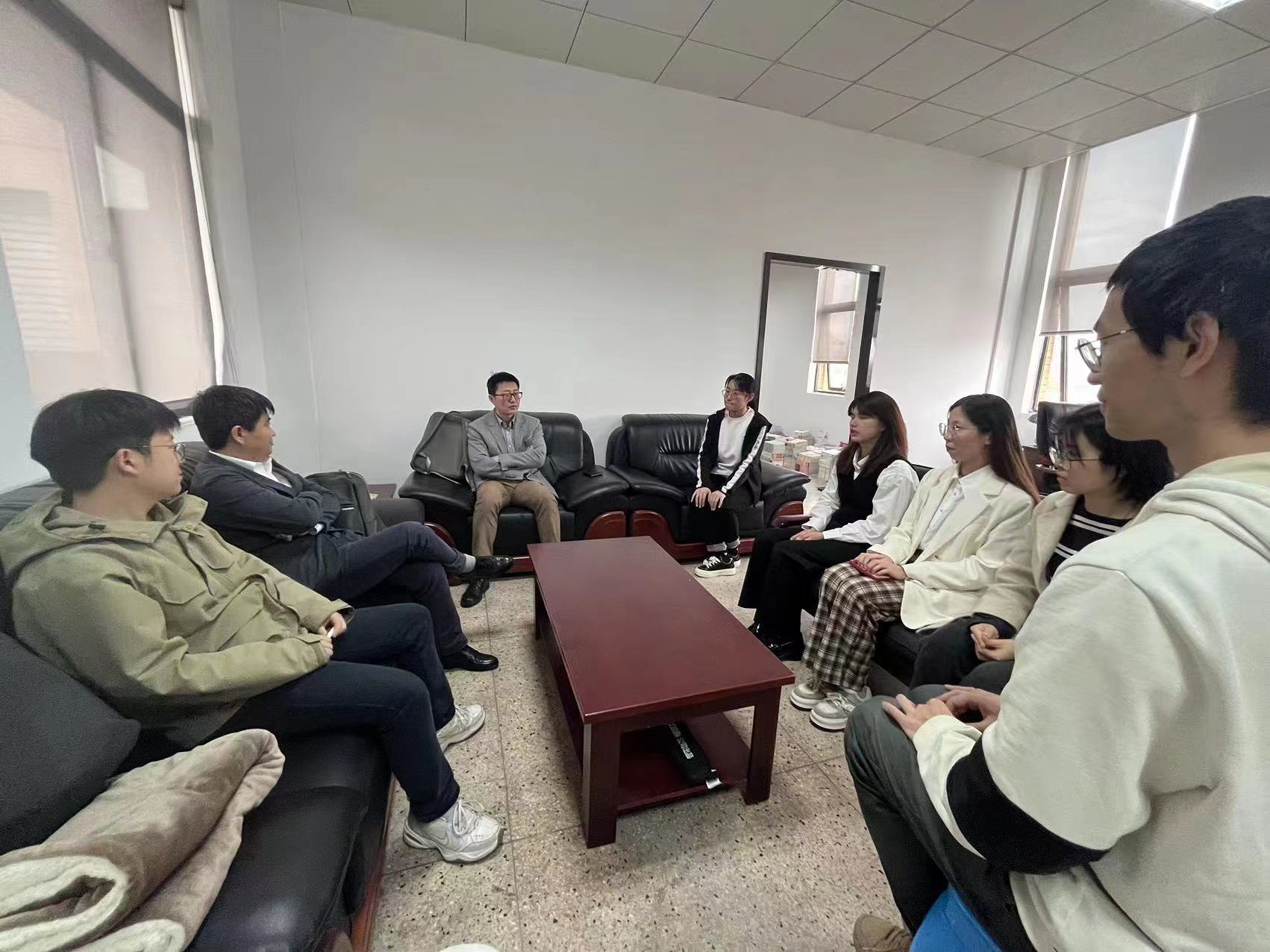 丁修真向实习公司负责老师了解实习生的实习情况,就实习现状、师范人才培养等问题展开热烈讨论。丁修真一行观摩了实习生汪玥和陈桐的公开课并给予了高度评价,此外也针对他们上课过程中出现的各种问题提出了意见与建议。丁修真一行与实习生在办公室召开座谈会,会上,老师们与实习生进行了深入交谈,丁修真详细询问了大家的学习、生活情况,向大家介绍了师范生人才培养的“小学期”制度,并鼓励大家积极参与,加强自身的师范生技能,为就业做好充分准备。丁修真听取了实习生对公司实习工作的想法和建议,王翠柏强调在实习的过程中要多向一线教师请教,多观摩学习,脚踏实地提升公司产品能力,郭忠尧鼓励同学们抓住实习机会,不断提升、沉淀自己。