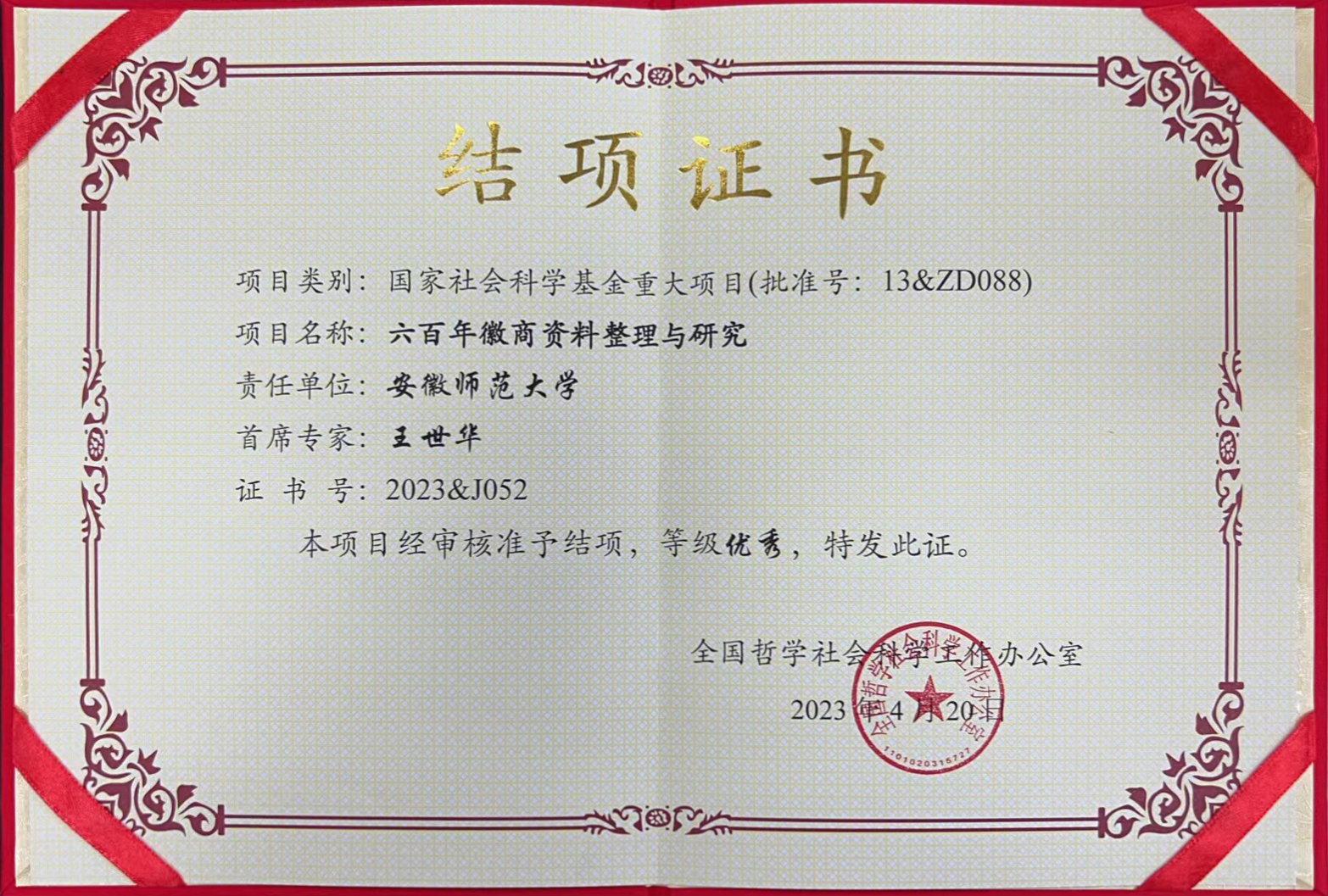 本网讯(英国上市公司365 李志翀)近日,从全国哲学社会科学工作办公室获悉,公司英国上市公司365王世华教授为首席专家的国家社科基金重大项目“六百年徽商资料整理与研究”(批准号:13&ZD088)通过结项验收审批,批准鉴定等级为“优秀”,证书号:2023&J052。据悉,该项目为迄今为止公司首个获评优秀等级的国家社科基金重大项目。