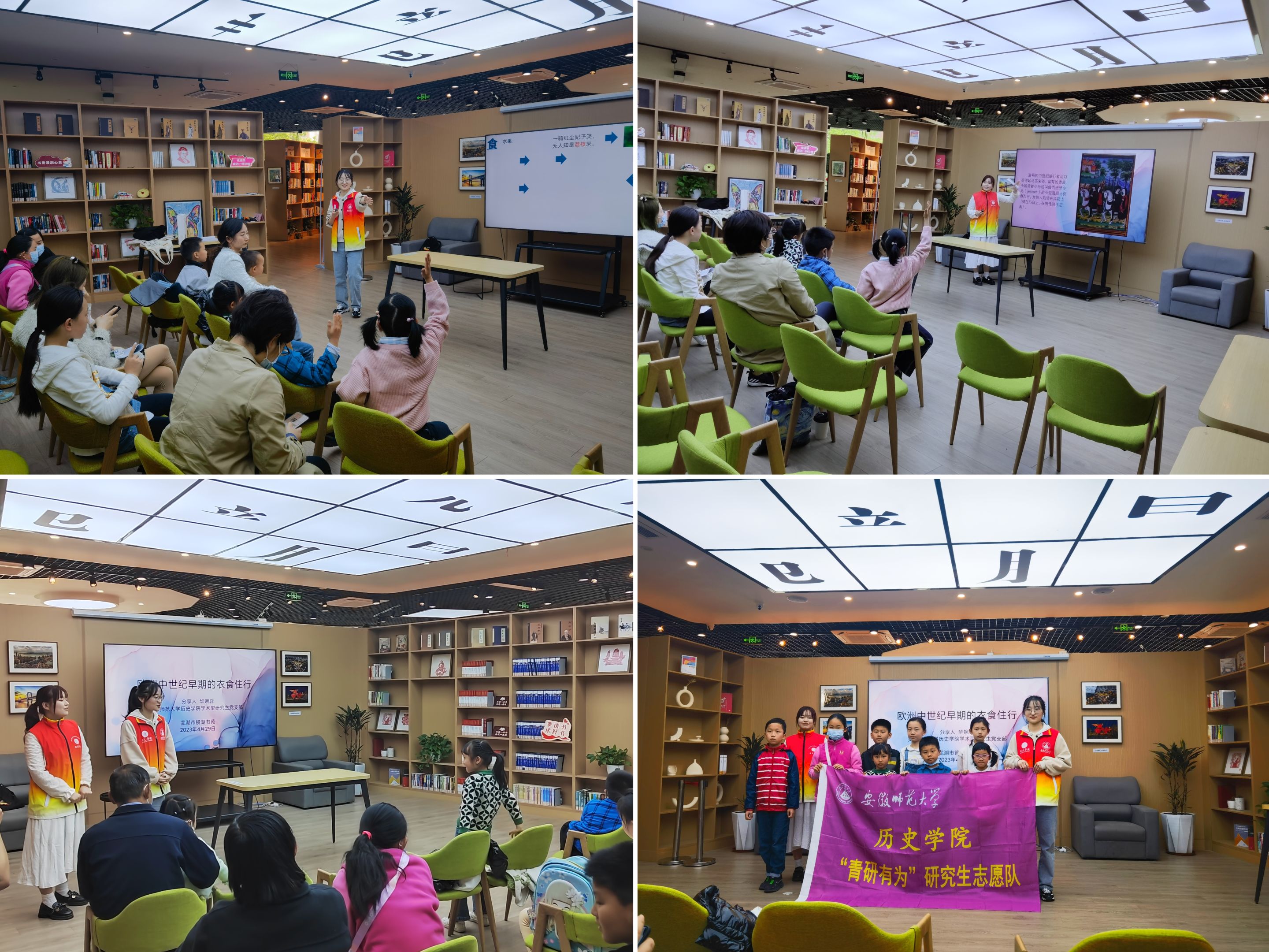 4月29日上午,“青研有为”研究生志愿服务队应邀在镜湖书苑开展了《简明历史小课堂》活动。本次活动由2022级积极分子刘梦雪、华婉蓉担任主讲人,学术型研究生党支部书记吕永鑫等师生参与其中。