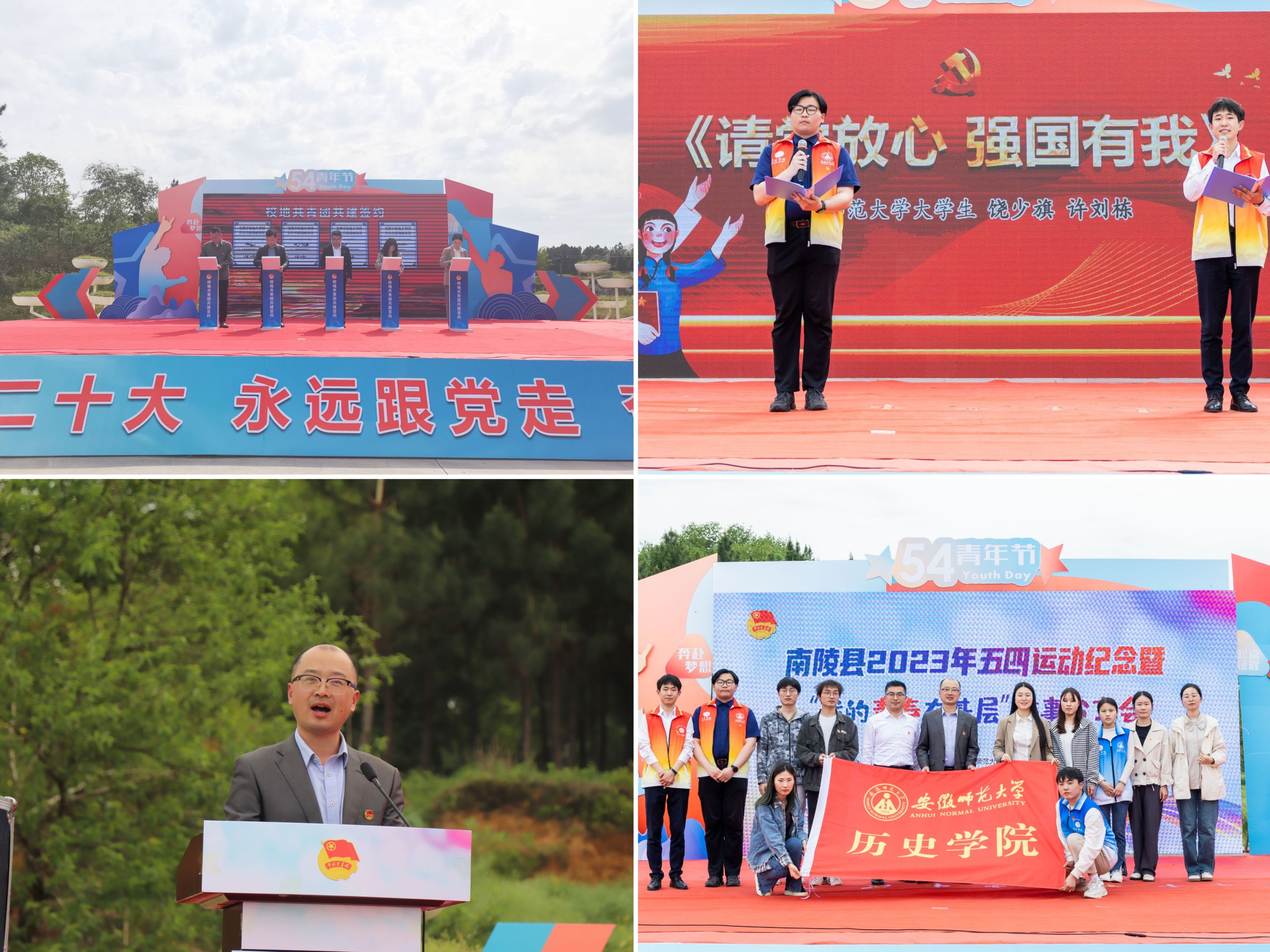 活动现场,南陵团县委同英国上市公司365团委等四所高校的团组织举行了校地共青团共建签约仪式。“青领计划”老员工代表、“鲁冰花”老员工志愿者代表、青年干部代表和全国乡村振兴青年先锋依次上台进行了青年实践故事、青年志愿者故事、青年干部故事和青年创业故事的分享。四名优秀青年聚焦“我的青春在基层”这一主题,用朴实的语言讲述了自己在基层坚守初心的奋斗经历。宫超为大家上了一堂题为《青年人,为什么要坚定“四个自信”》的微党课。