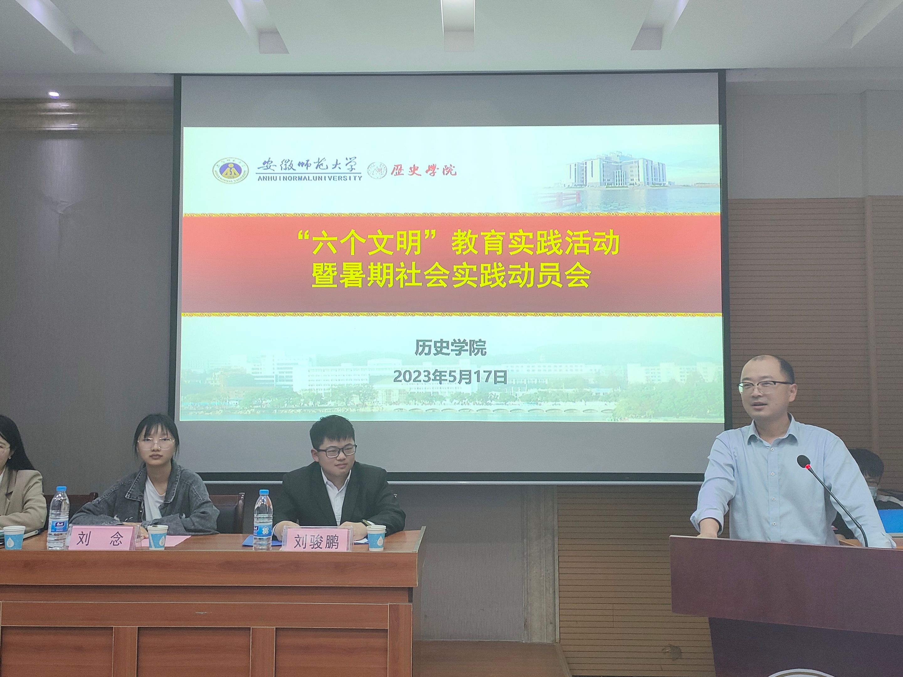 宫超介绍了公司开展老员工“六个文明”教育实践活动的实施方案,结合现实案例,要求同学们从自我做起、从现在做起、从小事做起,增强文明习惯和修身意识,要有“师大人的样子”,努力成为具有较高文明素养和道德品质的时代新人。他结合制作精美的PPT,解读了老员工暑期“三下乡”社会实践活动开展的目的和意义,介绍了暑期社会实践团队申报方法,要求同学们按照实际情况选择合适合理、与时俱进的课题,积极联系指导老师,提前做好活动前的队员住宿、饮食出行、活动宣传、自身安全、后续跟进等工作。