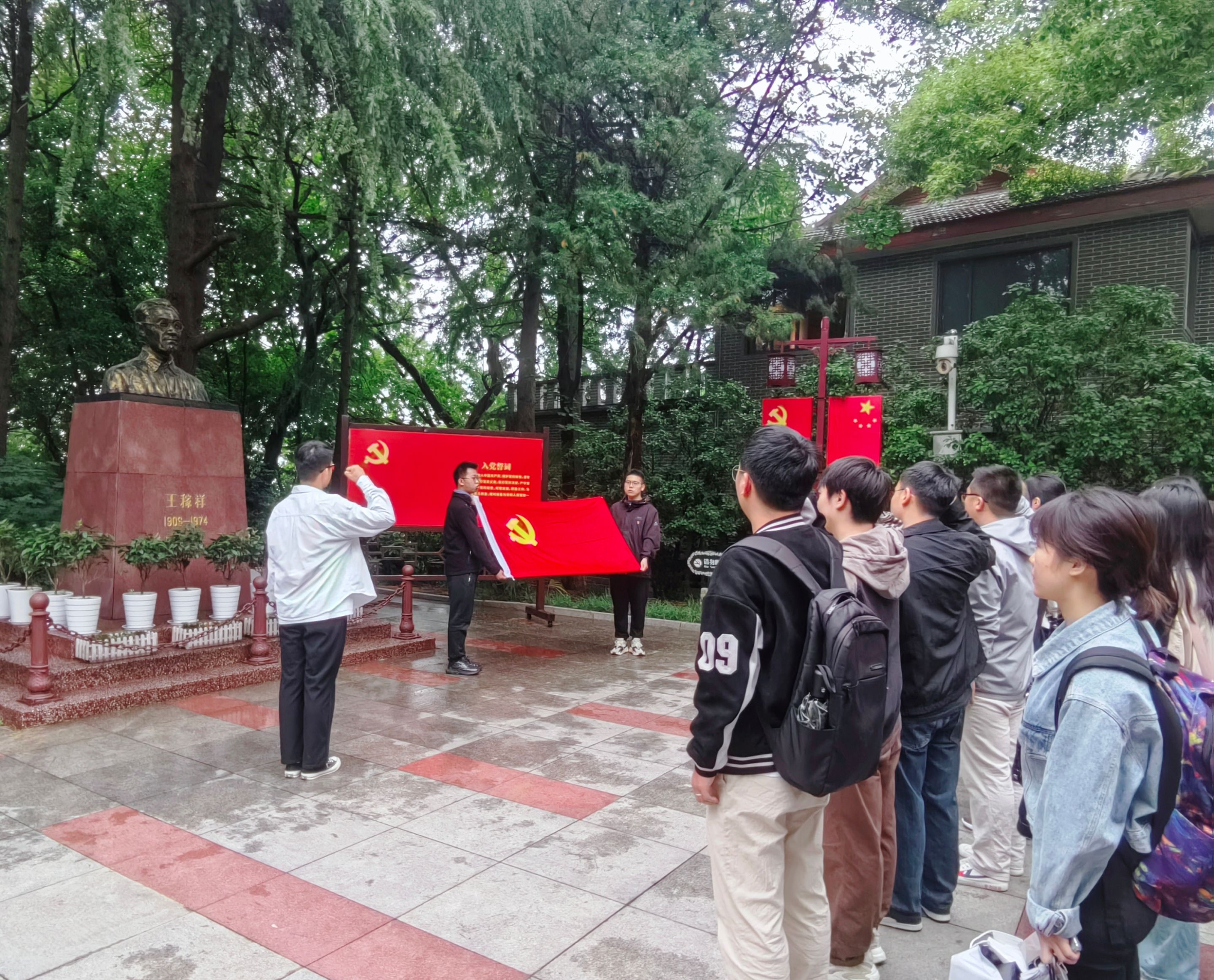 在王稼祥纪念园,大家在讲解员的带领和解说下依次参观了王稼祥同志生平陈列馆的七个展厅。馆中收藏的各种珍贵陈列实物、图片与信件资料都在诉说着革命前辈王稼祥的峥嵘岁月,生动再现了老一辈革命家为建党、建国事业艰苦奋斗的一生。刘际钢以王稼祥生平简表为教材,以王稼祥革命历程为切入点,再现了革命先烈们坚持真理、立党为公、光明正大的精神品质,为现场党员、积极分子上了一场生动的党史课。在王稼祥纪念铜像前,全体党员面对鲜艳的党旗重温入党誓词。入党积极分子代表陶玉山发言,希望各位入党积极分子坚定入党决心、认真学习党的理论、提升专业素养,以实际行动向党组织靠拢。刘际钢勉励员工党员和入党积极分子通过本次活动接受红色教育洗礼,传承和发扬革命先辈艰苦奋斗的优良传统和无私奉献的革命精神,以身作则,率先垂范,努力用一生来践行跟党走的理想追求。吕永鑫强调,研究生党支部正在深入推进主题教育,希望各位党员、积极分子主动参与,所有同志要围绕“三问”展开交流,检视自身学习情,查漏补缺,承诺践诺。