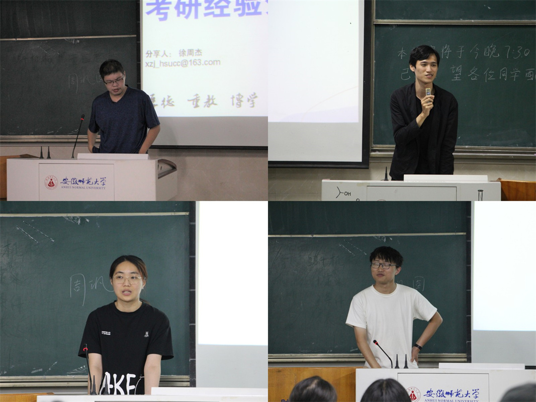 教师寄语后,2019级8名升学的优秀毕业生们结合考研整体环境与个人实际,进行了全方位、有侧重地考研经验分享。他们指出,在考研过程中,选择至关重要,应综合考虑自身学业水平、兴趣爱好与发展目标等,在专业型学位与学术型学位中抉择;备考宜坚定决心,磨练意志,提高效率,注重方法,做到不盲目、不畏难、不拖沓;考研题型及难度不一而论,不同专业有不同挑战,需潜心钻研,总结规律,同时充实自身,以不变应万变。过程中同学们认真倾听,仔细记录,就考研中的个性化问题,现场问答。
