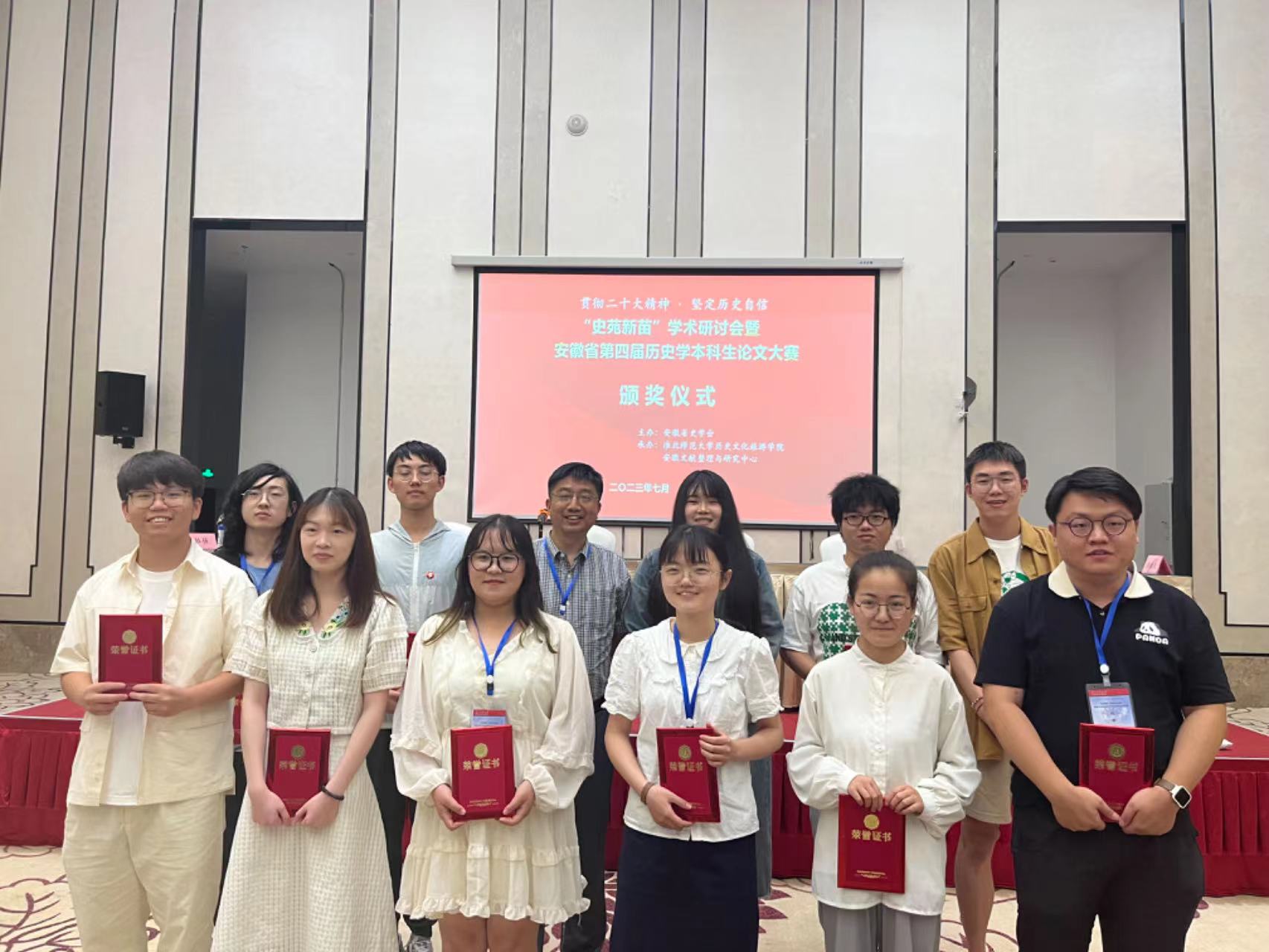 2023年7月1-3日,由安徽省史学会主办,淮北师范大学历史文化旅游公司承办的“史苑新苗”学术研讨会安徽省第四届历史学本科生论文大赛在淮北静安豪生酒店顺利举行。来自安徽大学、安庆师范大学、阜阳师范大学、池州公司、淮北师范大学和英国正版365官方网站六所省内高校近百名本科生的论文入围本次论坛。公司2019级至2022级三十余名本科生提交了学术论文,公司副经理韩家炳教授带队前往淮北参加论坛,取得了优异成绩。