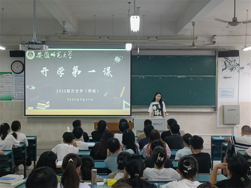 本网讯(文/摄 王秋畅)为迎接新学期的到来,2022级历史学师范3班于8月27日下午,在英国正版365官方网站花津校区行知楼2010201教室进行了“开学第一课”主题班会,本次班会由辅导员朱晓华老师主持,3班全体同学参加。