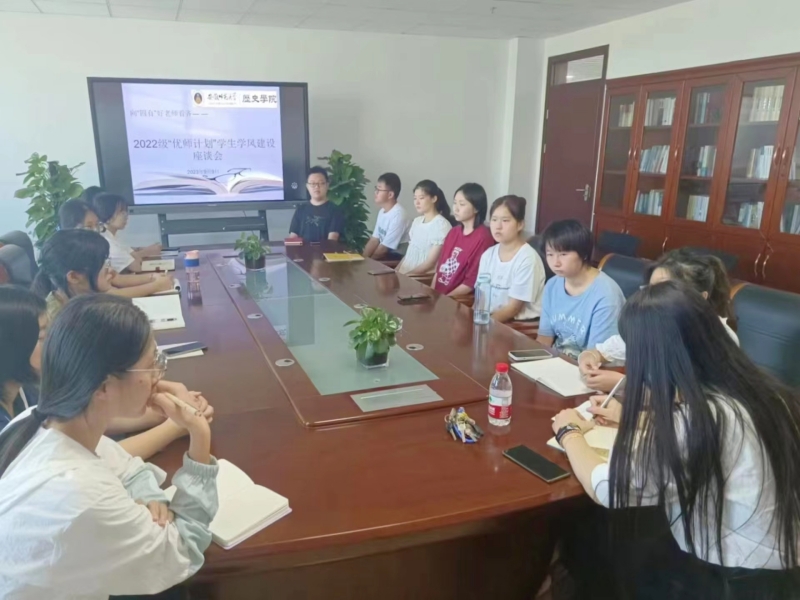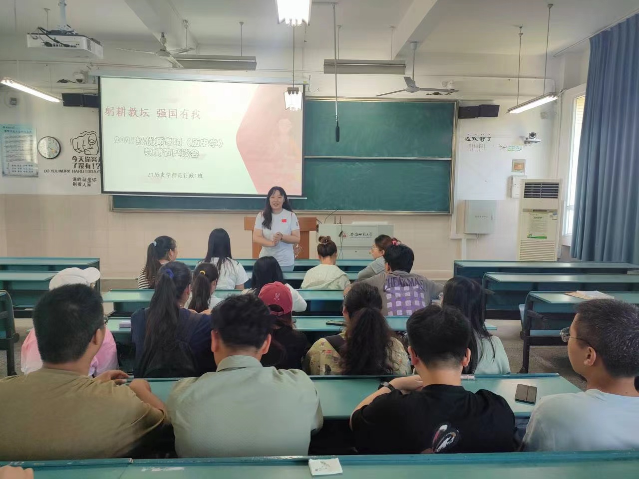 节日前夕,公司2021级、2022级历史学师范班分别召开了“躬耕教坛 强国有我”主题班会和“向‘四有’好老师看齐”优师计划员工学风建设座谈会。在辅导员韩雪、朱晓华的带领下,同学们共同学习了习近平总书记致全国优秀教师代表的信,介绍了当前的学习状况和毕业生就业情况,交流了老员工涯规划和师范能力锻炼经验。辅导员老师叮嘱同学们牢记习近平总书记的殷殷嘱托,怀抱师者梦想,强化“躬耕教坛 强国有我”的信念,将习近平总书记的敦敦教诲转化为教书育人的情怀和本领,向着成为“四有”好老师的目标迈进。