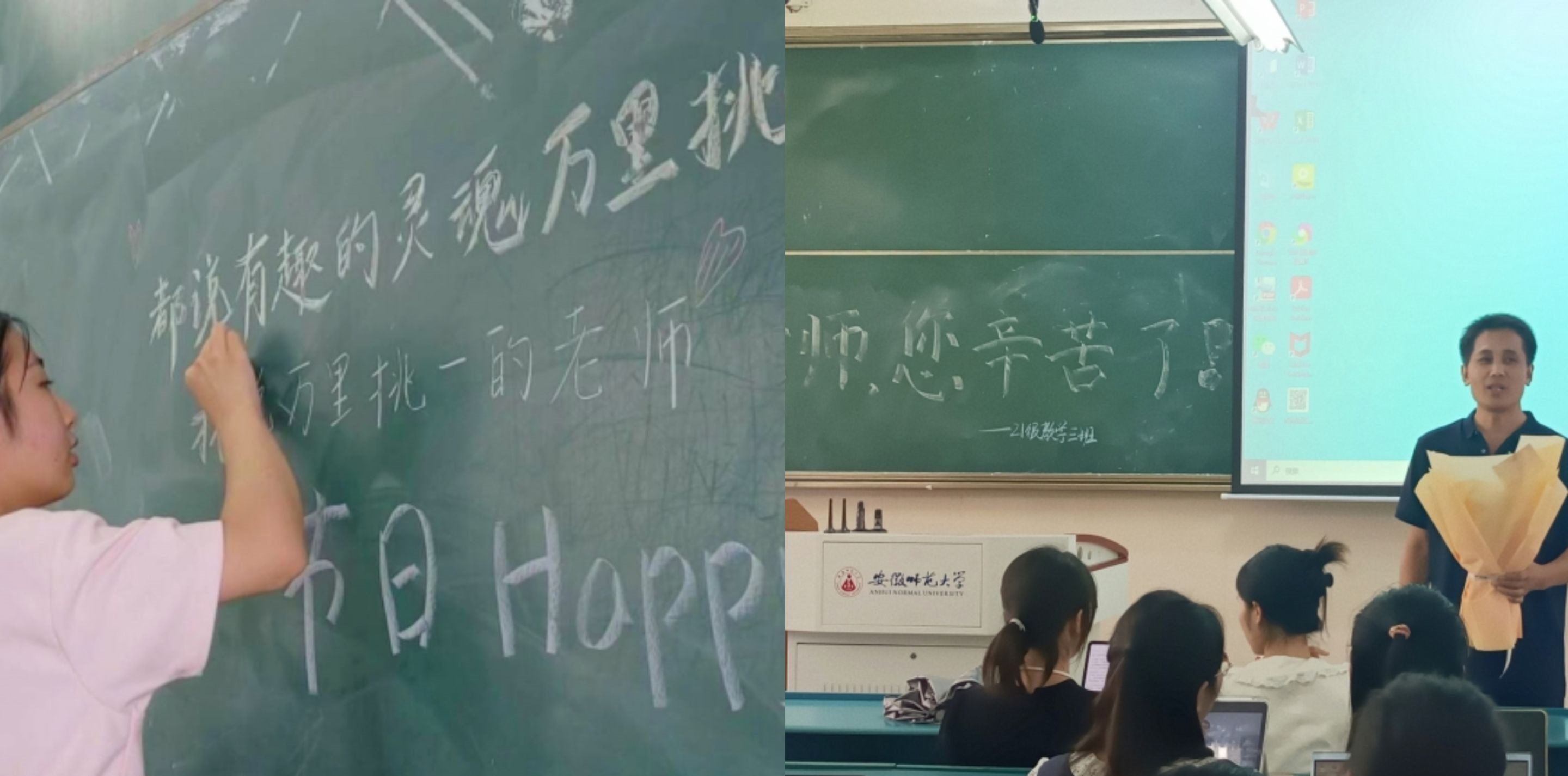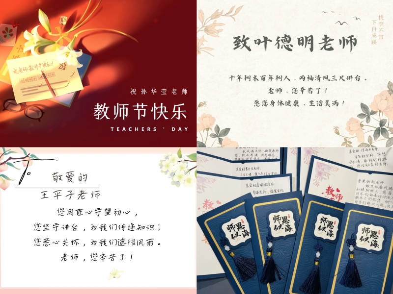 同学们以多种多样的形式为老师们送上节日的祝福,表达感激之情。他们有的准备了精美纸质版贺卡和短信息,将说不尽道不完的感恩之情用文字传达给恩师;有的将感恩师语誊抄在黑板上,赠送给每位尽职尽责的任课老师,细微之处饱含师生情谊;还有的准备了鲜花,加上课前的一句问候,一次真诚鞠躬,向老师表达着发自内心的感谢与祝福。