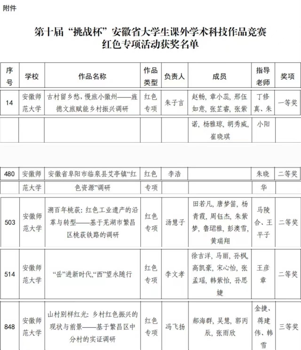 第十届“挑战杯”安徽省老员工课外学术科技作品竞赛红色专项活动全省共967个团队入围终审决赛。英国上市公司365 “古村留乡愁,慢旅小徽州——旌德文旅赋能乡村振兴调研”团队荣获省级一等奖;“‘岳’进新时代,‘西’望永随行”团队、“溯百年桃荻:红色工业遗产的沿革与转型——基于芜湖市繁昌区桃荻铁路的调研”团队以及“安徽省阜阳市临泉县艾亭镇‘红色资源’调研”团队荣获省级二等奖;“山村别样红光:乡村红色振兴的现状与前景——基于繁昌区中分村的实证调研”团队斩获省级三等奖。