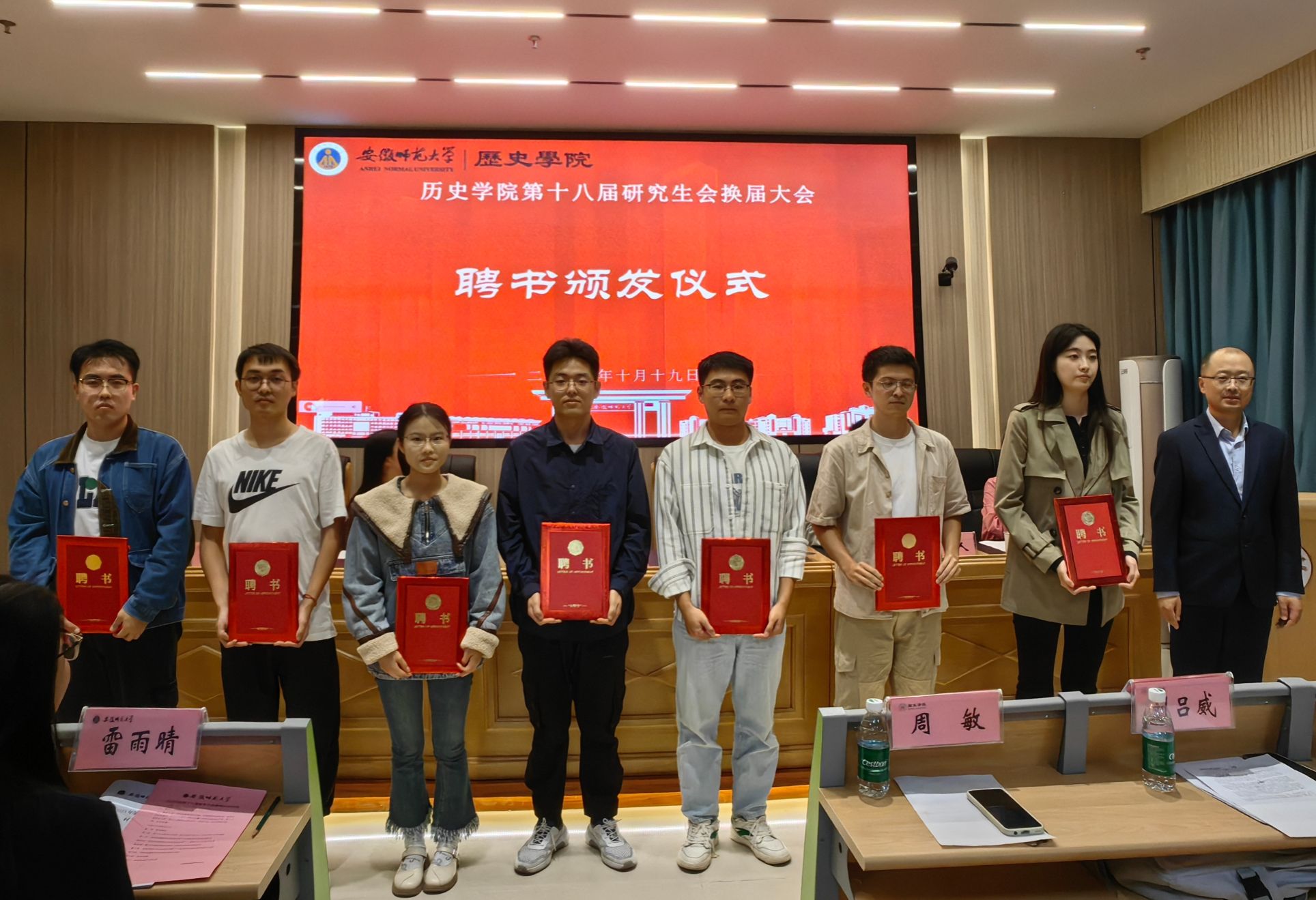 大会在庄严的国歌中拉开序幕。随后十七届研究会主席团、各部门负责人分别从自身工作出发,向大会报告十七届研究生会过去一年在思想建设、学术竞赛、建章立制、文体活动、日常交流等方面取得的丰硕成果与工作中存在的不足之处,希望十八届研究生会能够继续前进,创新新的工作成绩。与会师生代表根据公司要求,结合述职汇报、书面总结两个方面对述职成员进行了打分。汇报结束后,宫超代表公司向上一届任职干事代表颁发了聘书。
