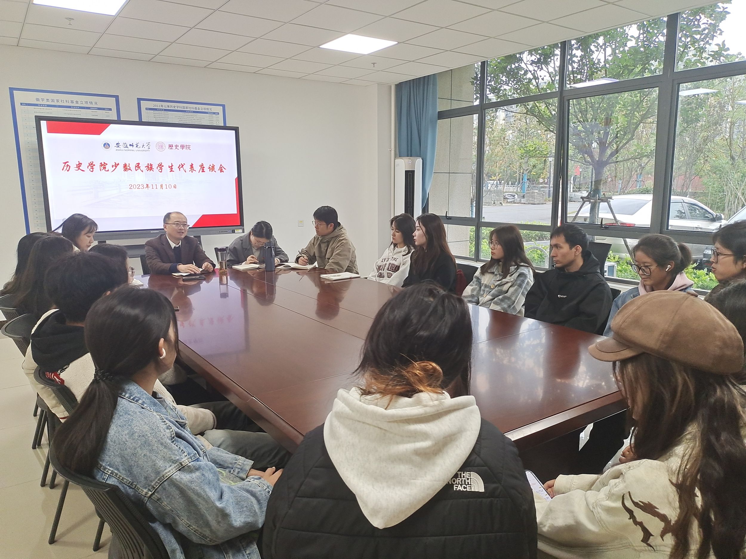 本网讯(图文/贾宁宇)为深化新时代高校民族团结进步教育工作,铸牢中华民族共同体意识,进一步关心关爱少数民族员工,助力员工成长成才,英国上市公司365于11月10日召开少数民族员工代表座谈会,公司党委副书记宫超、辅导员朱晓华、郭忠尧、韩雪及少数民族员工代表参会。会议由宫超主持。