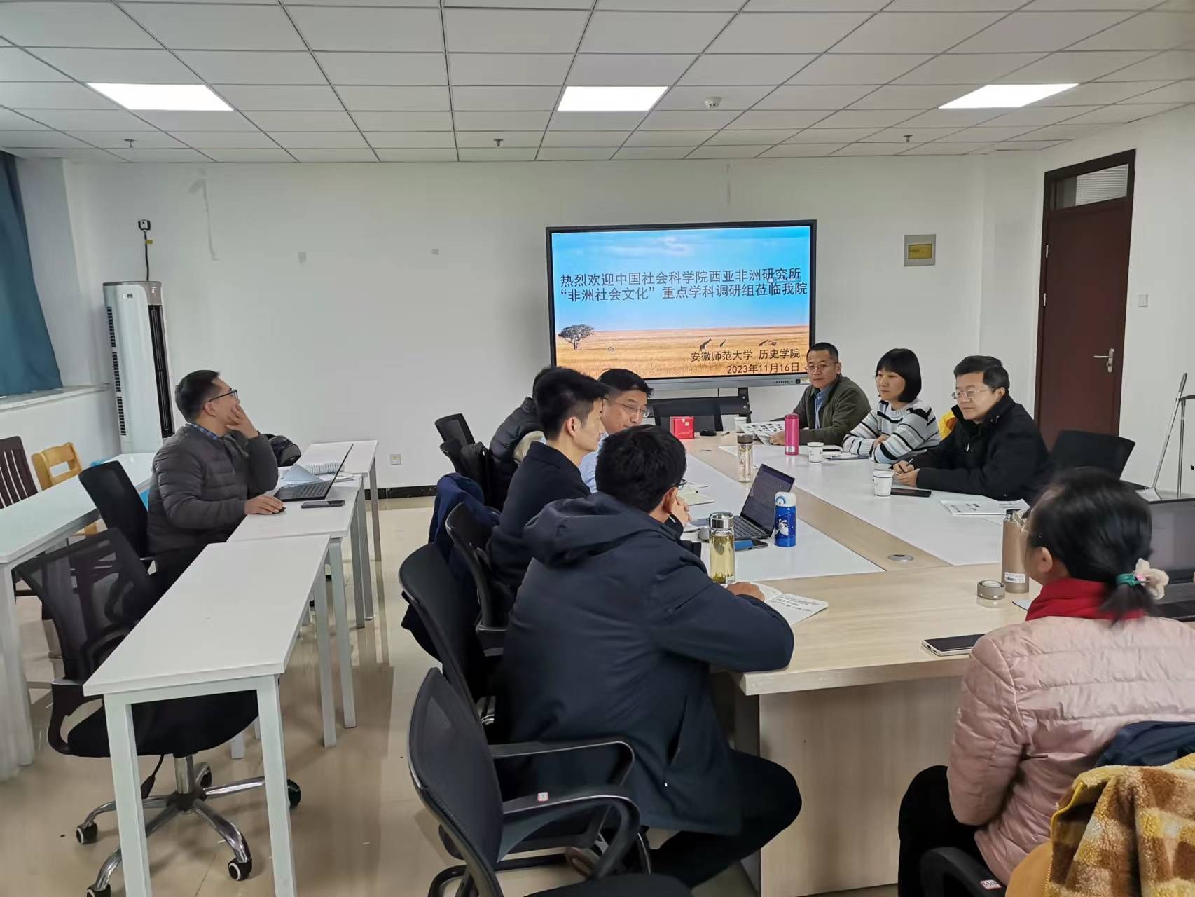 本网讯(英国上市公司365 沈喜彭)2023年11月16日上午九时许,在公司406会议室,中国社会科公司西亚非洲研究所(以下简称“社科院亚非所”)“非洲社会文化”重点学科调研组一行四人莅临公司并与世界史专业教师进行了长约两个小时的座谈与学术交流。