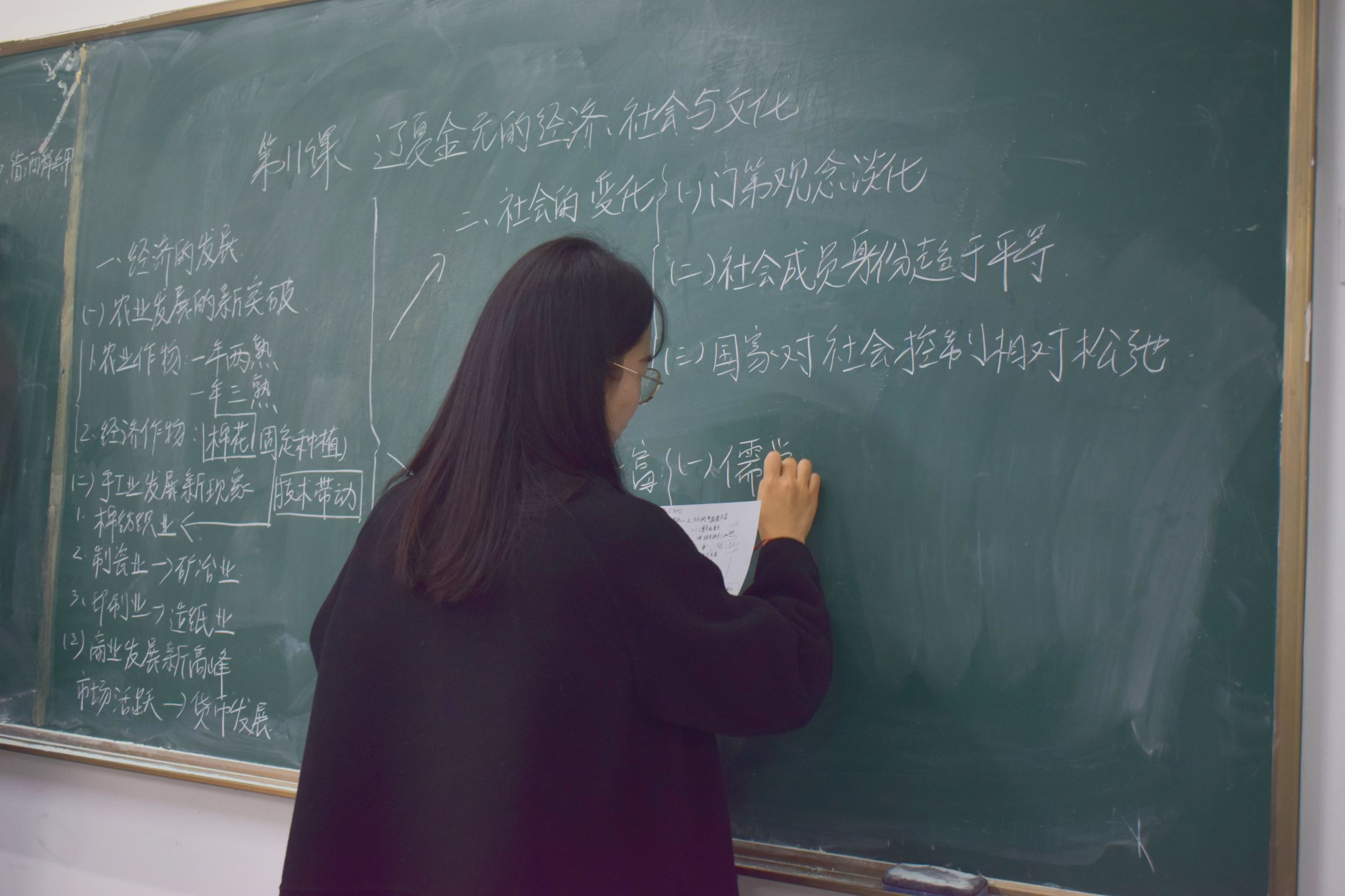 比赛伊始,黄婕介绍了本次比赛规则,本次板书设计大赛采用现场随机抽题、限时30分钟备课、15分钟设计书写的比赛模式,相对往年,本次比赛对选手提出的要求更高。随着比赛开始,12位研究生按照每组两人同时依次进行抽签,在备课室不依赖手机等电子设备的情况下独立完成备课,选手结合教材内容、单元导语和课程标准等书写了各类精彩纷呈的板书,呈现了纲要式、线索式、思维导图式等类型板书,展现了学科历史研究生扎实功底和公司教学实训成果。之后,评委对每位参赛选手的板书进行了提问和评价。何礼群老师主要针对选手板书的逻辑问题提出相关问题和建议,她认为历史教学的板书要能够反映出每一课的知识体系,使得知识能够层次鲜明,便于员工理解;王宜林老师则侧重于从板书的细节进行提问和评价,他指出组织板书内容时要注意表达的准确性和科学性,不能出现常识性错误,在备课时要加深对于教材的研读;孙华莹老师则明确提出书写板书的三个要求:内容结构化、逻辑化、突出重难点,简洁美观;王彦章老师则从书本的逻辑出发,强调要从整体把握住教材内容的完整性和逻辑性,并指出板书是教学的辅助工具,同时要考虑员工对于板书内容的接受度。
