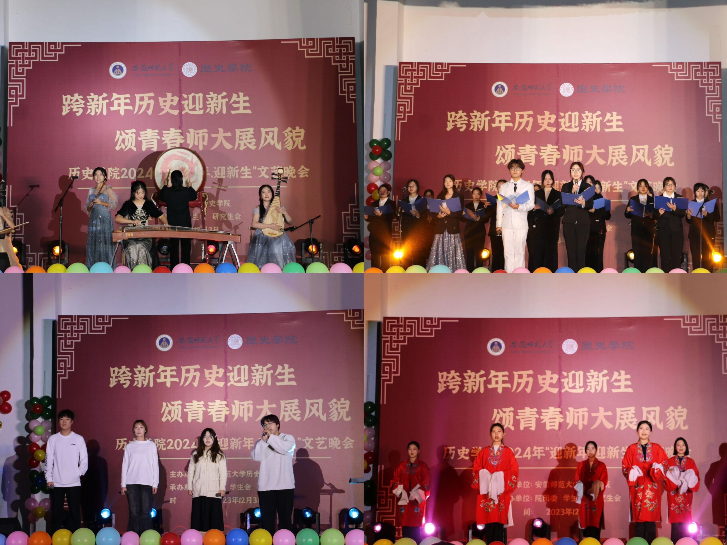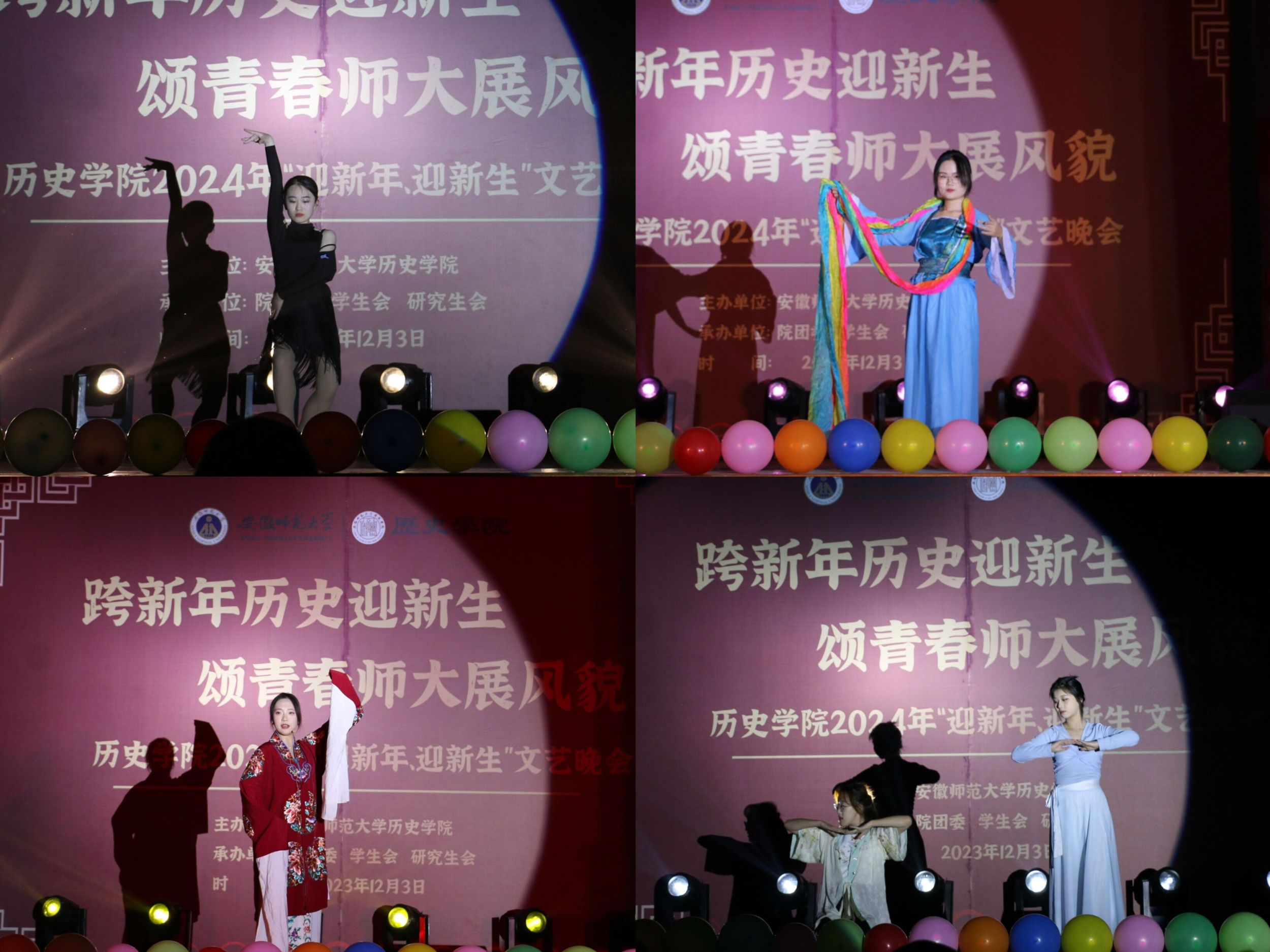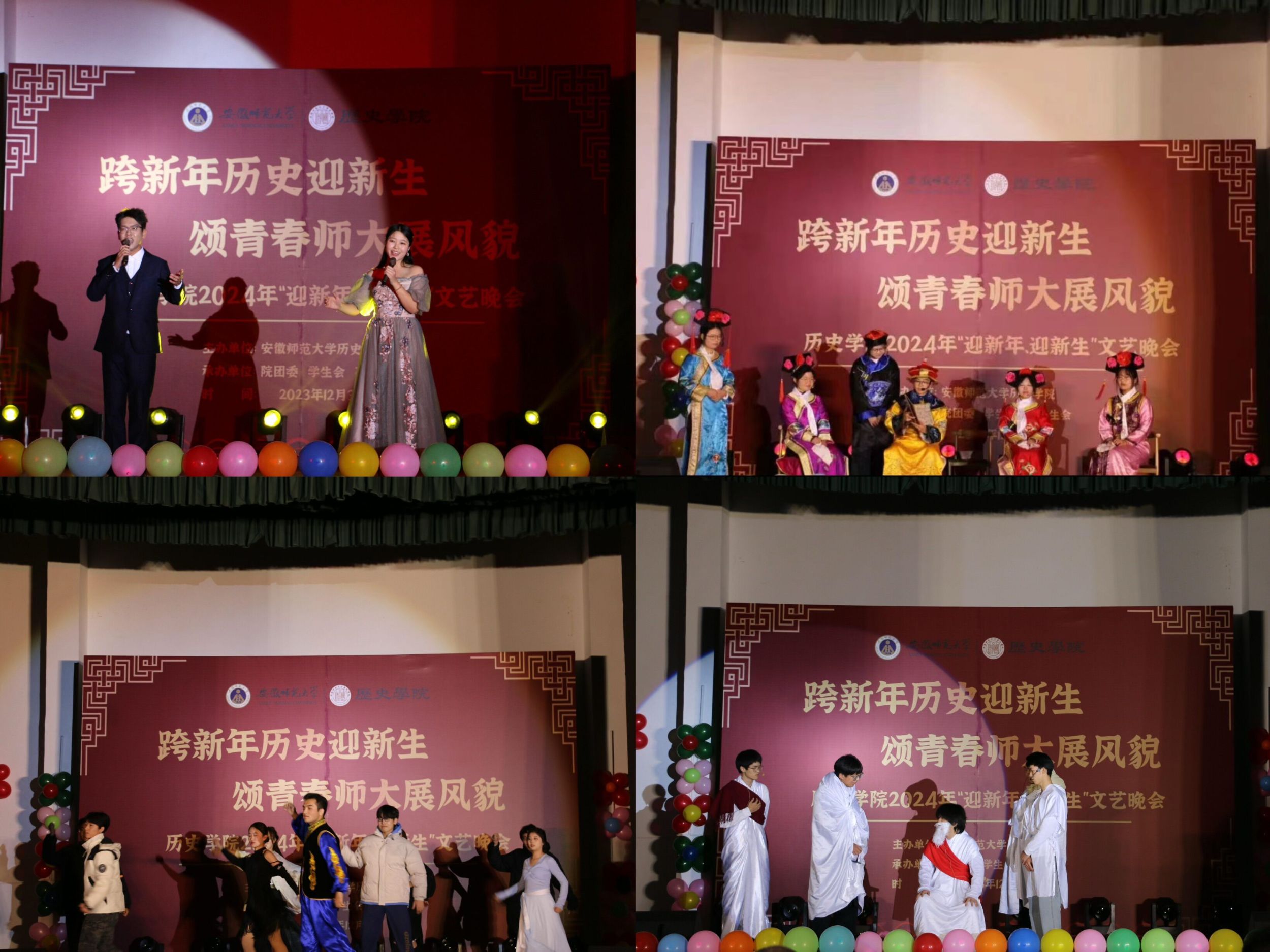 晚会以一首青春洋溢的舞蹈《Yes Ok》拉开序幕。伴随着磅礴的鼓声,乐器表演《象王行》结合竹笛、古筝、琵琶、二胡于一体,展现独属于中国古典音乐的韵味;话剧《苏格拉底之死》穿越时空,见证了伟大哲学家苏格拉底的智慧闪光;朗诵《我的南方和北方》表达了对祖国山川河流的依恋,赞美了中国北方的粗犷与壮美,描绘了南方的婉约与细腻;舞蹈串烧《舞蹈风暴》、《恋爱告急》展现了历史学子的激情与含蓄,奔放与童真;小品《面试小记》、《甄嬛传》、《大小姐和我》题材新颖、妙趣横生;歌曲《日不落》以爱为名,寄出思念、寄出爱的明信片,引起场下阵阵掌声;戏曲《青春梨园》彰显了中华优秀传统文化的魅力,体现了青春与传统的碰撞;朗诵《青春中国》领略了革命先辈的风采,凸显了青年的担当与责任……期间,团委书记朱晓华老师和员工同台为大家献上一曲《天仙配》,师生同乐将晚会氛围推向高潮,现场观众欢呼声和掌声阵阵。晚会在台上台下一起合唱《海阔天空》中晚会落下帷幕。