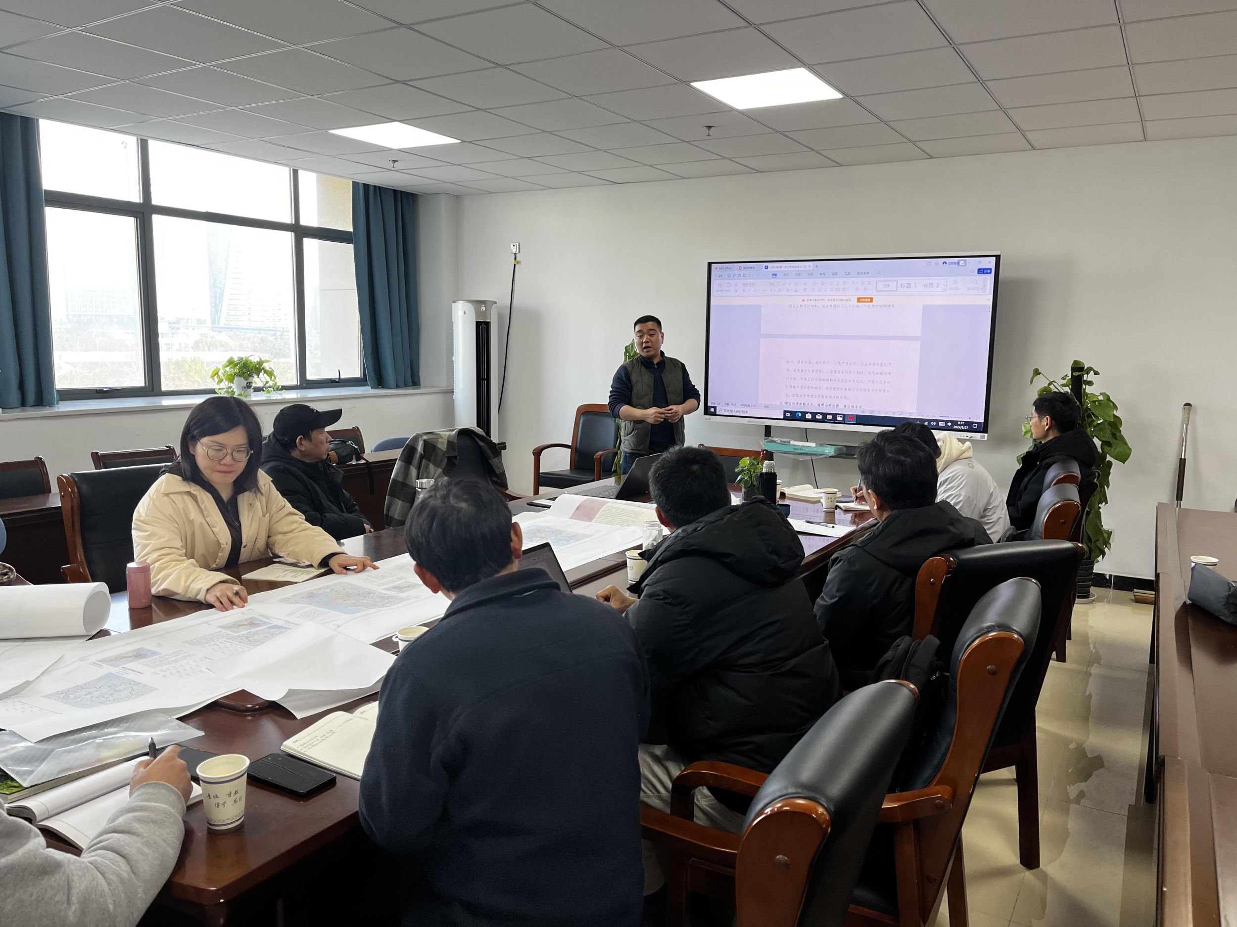 刘道胜经理致辞欢迎各位专家学者参加此次的《安徽省历史地图集》(专题地图卷)编纂设计交流会,希望大家能够畅所欲言。刘旭副经理汇报了项目启动至2024年1月《安徽省历史地图集》(专题地图卷)的已有成果,分享了制图过程中收获的经验和遇到的挑战,并就2024年的制图工作安排进行了介绍。汪跃平工程师认为,项目组工作成员之间应进一步加强沟通,增进不同学科领域间的知识反馈。许晓岩经理指出,六个专题图组中“政区图”部分已稳步推进,但“专题图”“特色图”部分仍面临着如参考资料不足、信息撰写体例不统一等问题。程军代表各断代小组简述了当前的工作进度,对2024年的工作内容及计划进行了概括。