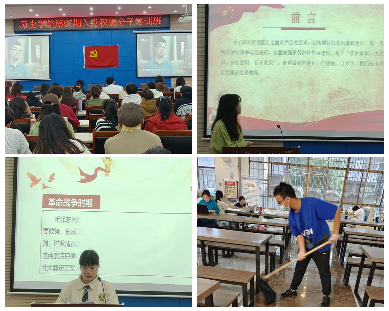 培训班坚持课堂理论教学与素质拓展活动相结合,通过组织各学员观看《永远的冲锋号》反腐倡廉纪录片、开展清洁校园志愿服务和党的二十大精神学习研讨会、党的廉洁文化宣讲等形式,在实践与宣讲中将党的创新理论内化于心、外化于行,在矢志奋斗中谱写新时代的青春之歌。