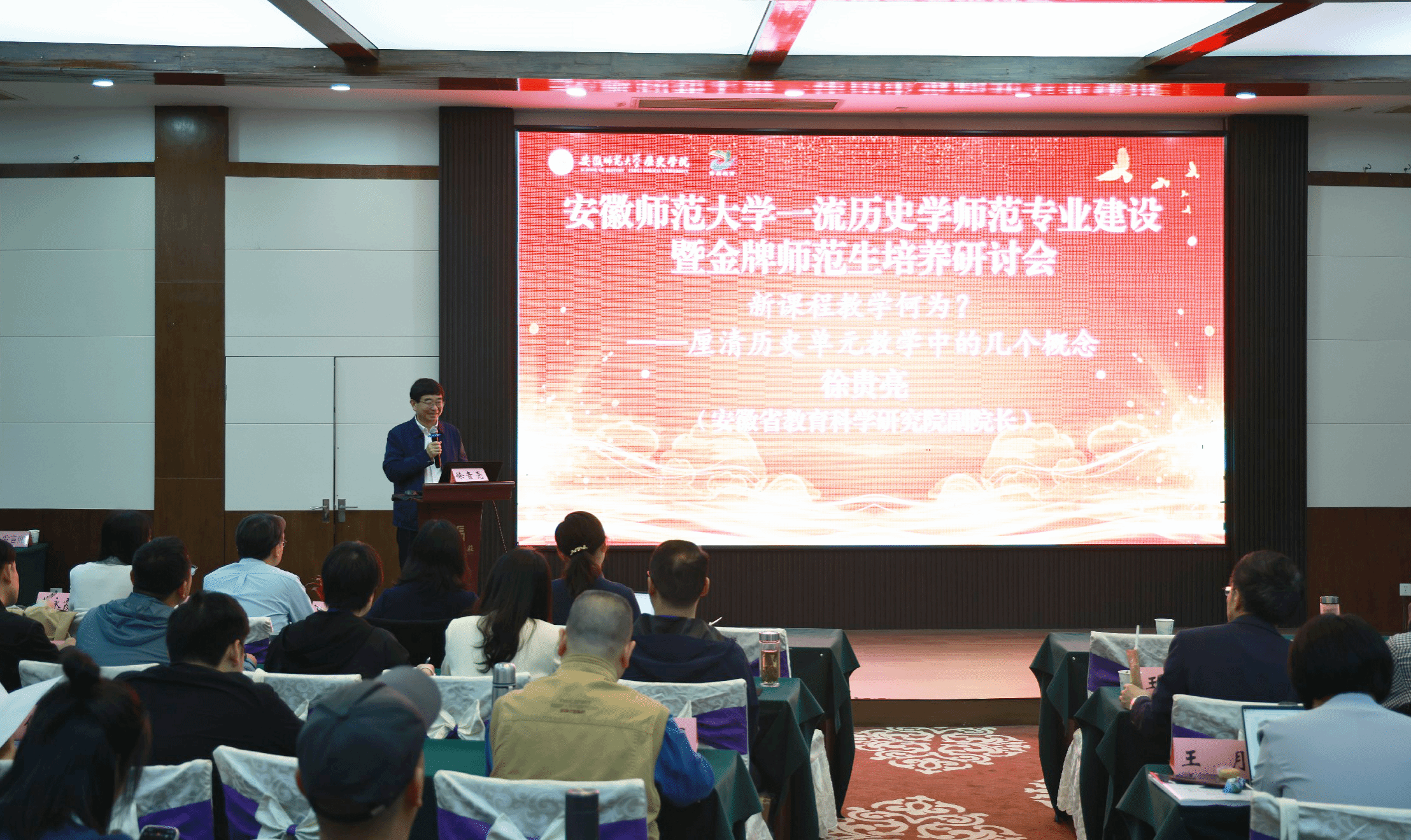 安徽省教育科学研究院副经理徐贵亮、江苏省溧水高级中学正高级教师李代贵、浙江省杭州学军中学正高级教师金丽君、芜湖市教育科学研究所历史教研员刘宏法、芜湖市繁昌区教师发展中心历史教研员李应平分别作了主旨发言。他们的发言着重探讨高中历史课程改革、公司产品方法、师范生培养等问题,发言内容深入结合各地各校的教学实际,学理性与实践性相统一,赢得了参会师生的广泛认可。